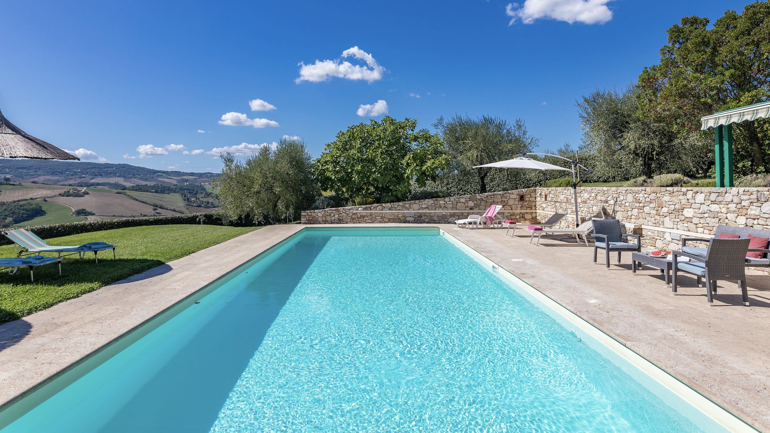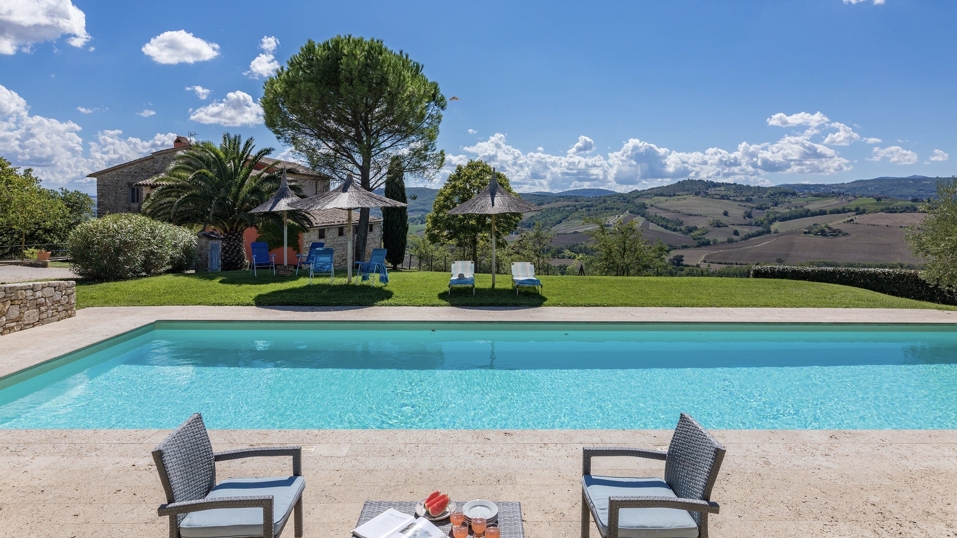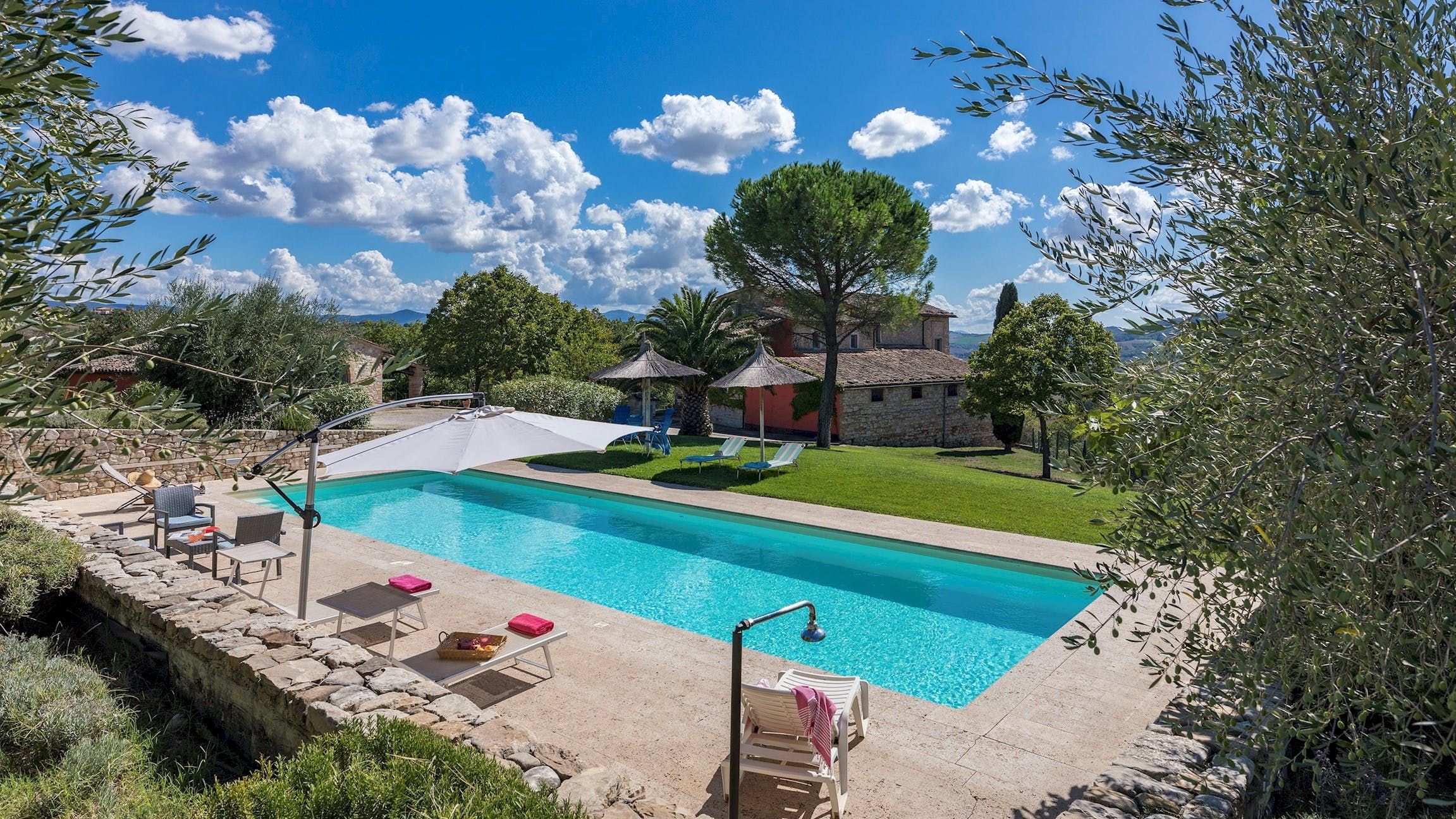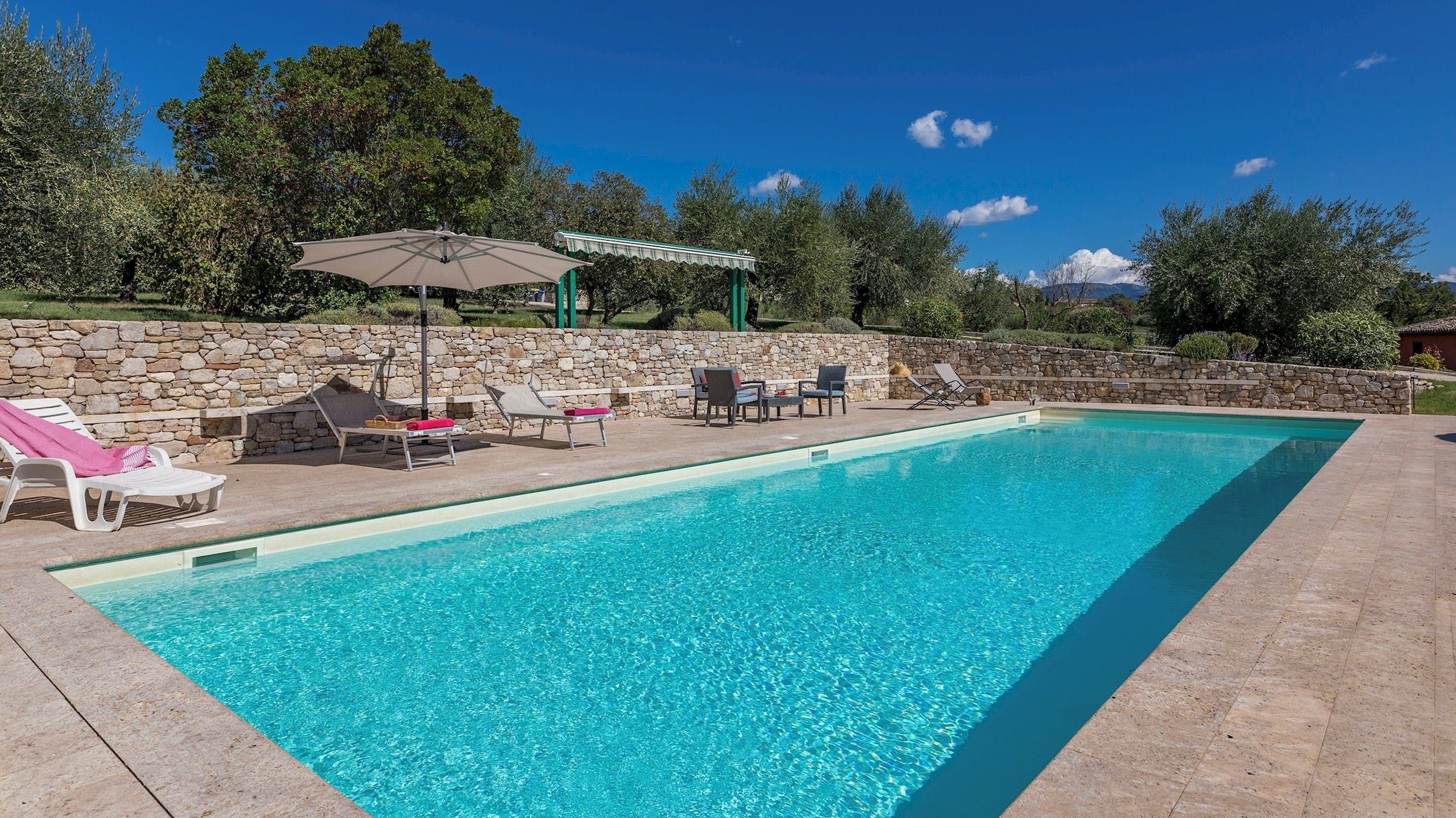 Out in the rolling hills of Umbria, this pretty stone villa embraces the quiet, provincial life. It’s surrounded by two hectares of forest, olive groves and fieldland and the private gardens are alive with lavender and fragrant Mediterranean herbs. Between the plant life, there are sunloungers on lawns, a children’s play park and plenty of shaded spots beneath trees to settle down with a good book. Perhaps the crowning glory of the gardens is the turquoise swimming pool, shimmering in the Umbrian sunshine. Though foodies may argue it’s the rustic summer kitchen with its brick-built grill, stone sink and prep area for long, lazy lunches in the loggia outside.