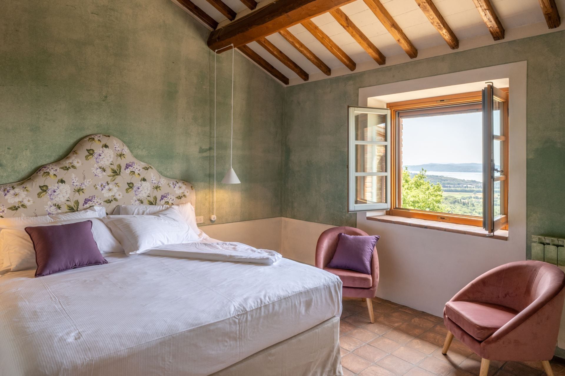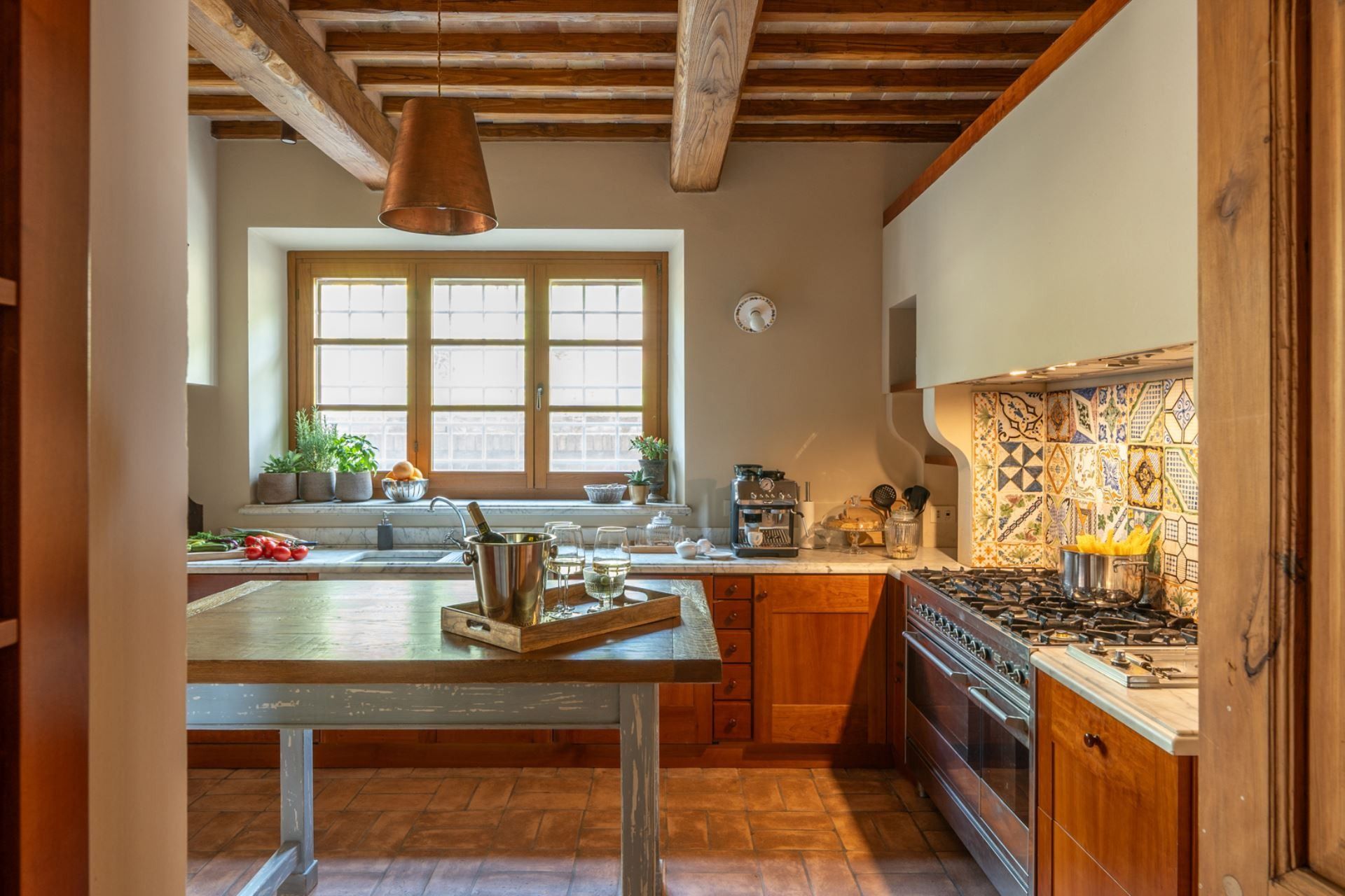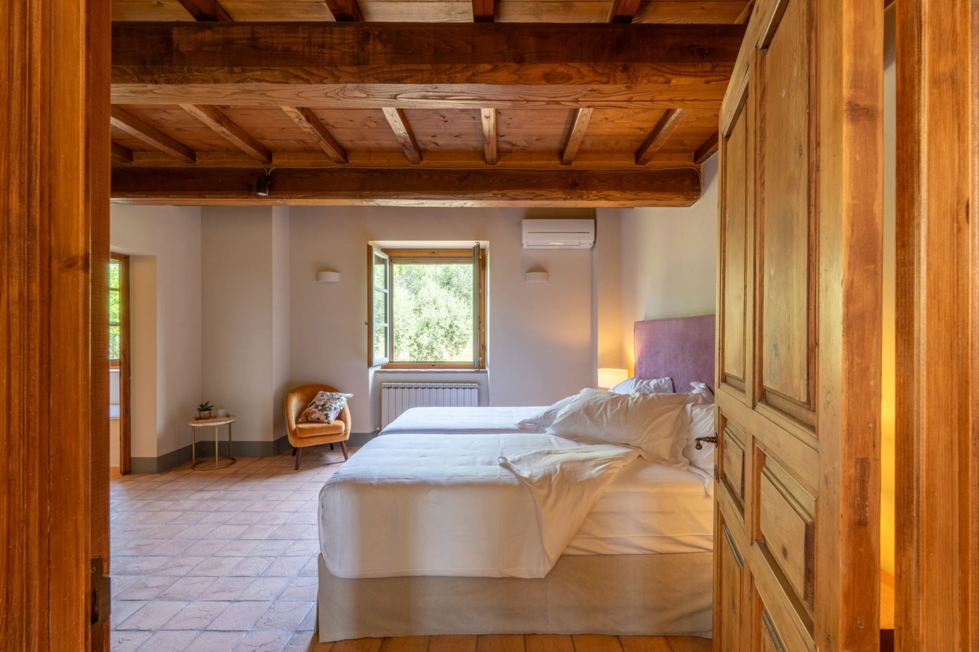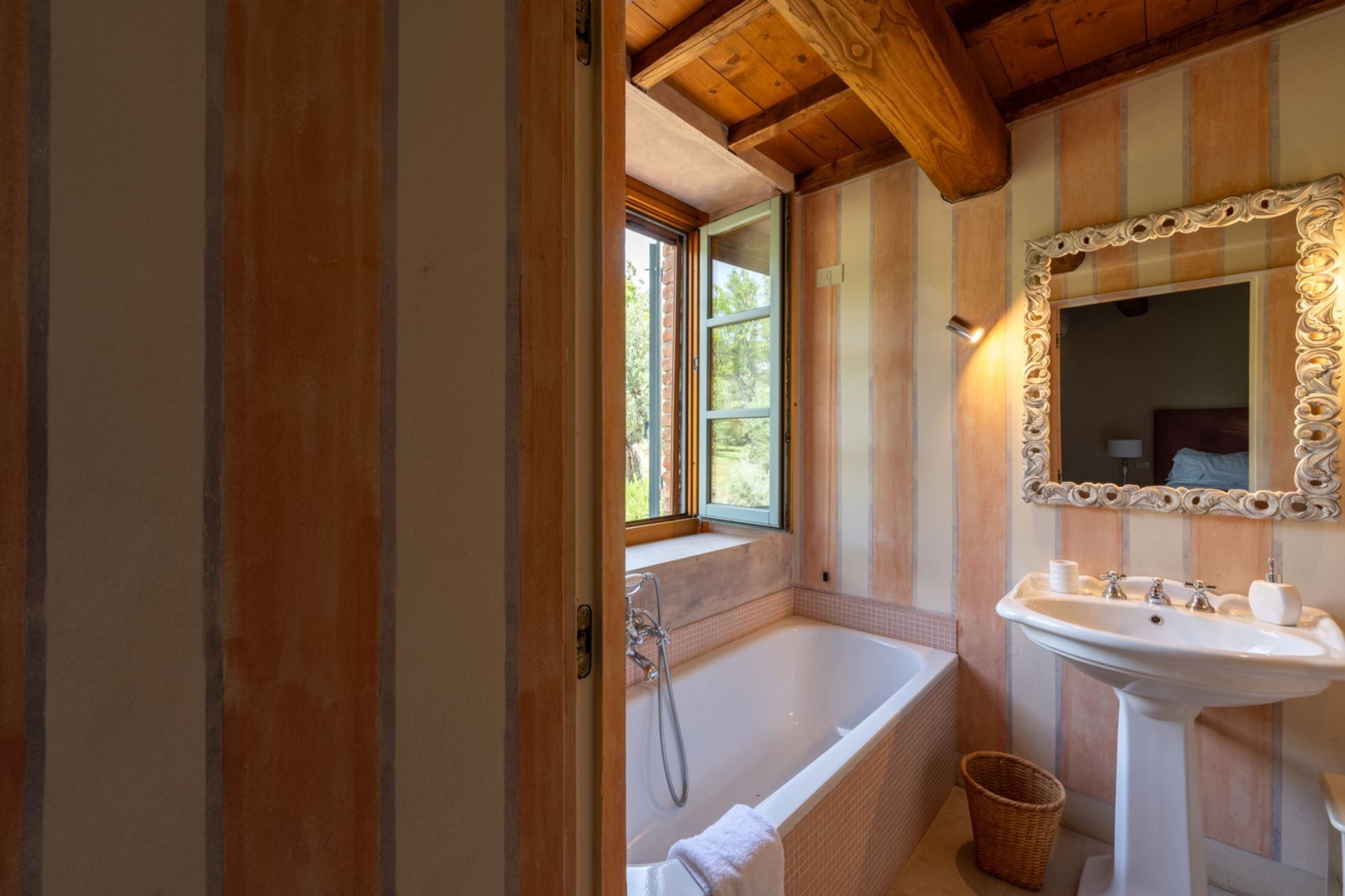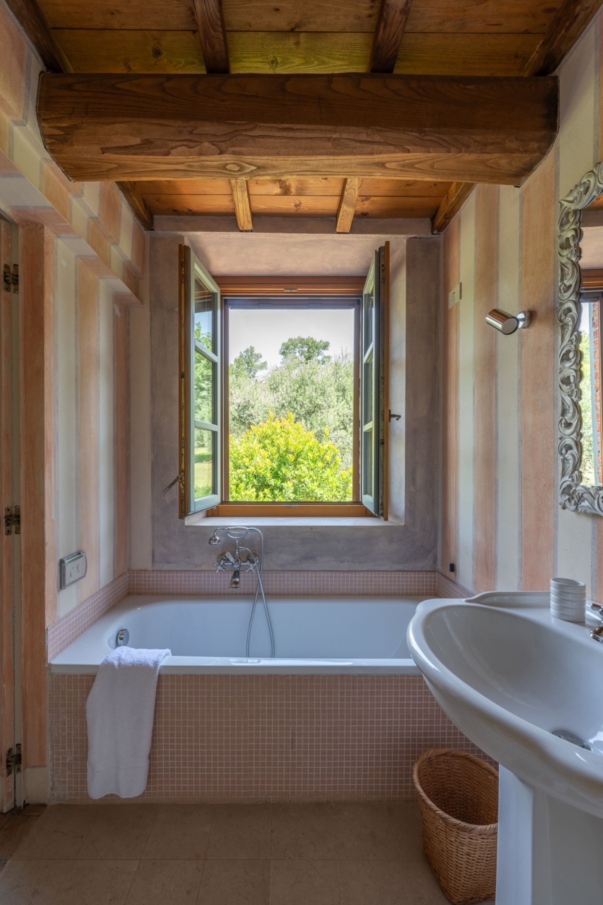 Less than 2 kilometres from Lake Trasimeno, this picture-perfect Tuscan villa feels like a true retreat. Days unfold at a leisurely pace, between dips in the infinity pool and long lunches on the patio surrounded by lush Mediterranean plants. Inside, it’s rustic chic, with exposed wooden beams, stone floors, pastel-painted walls, and bathtubs set beneath windows. A grand piano and a foosball table in the attic keep both grown-ups and kids entertained. The lake itself is perfect for swimming and watersports, with plenty of lovely dining options on the shores. Or explore the surrounding villages and vineyards for a tasting or two.
