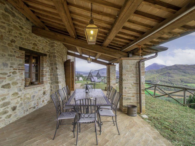 7-room house 300 m2 on 3 levels. Comfortable and rustic furnishings: large living/dining room with open-hearth fireplace and TV (flat screen). Exit to the loggia. Dining room. Open kitchen (4 hot plates, oven, dishwasher). Shower/bidet/WC. Gas heating. Upper floor: 1 room with 2 beds and TV (flat screen).
