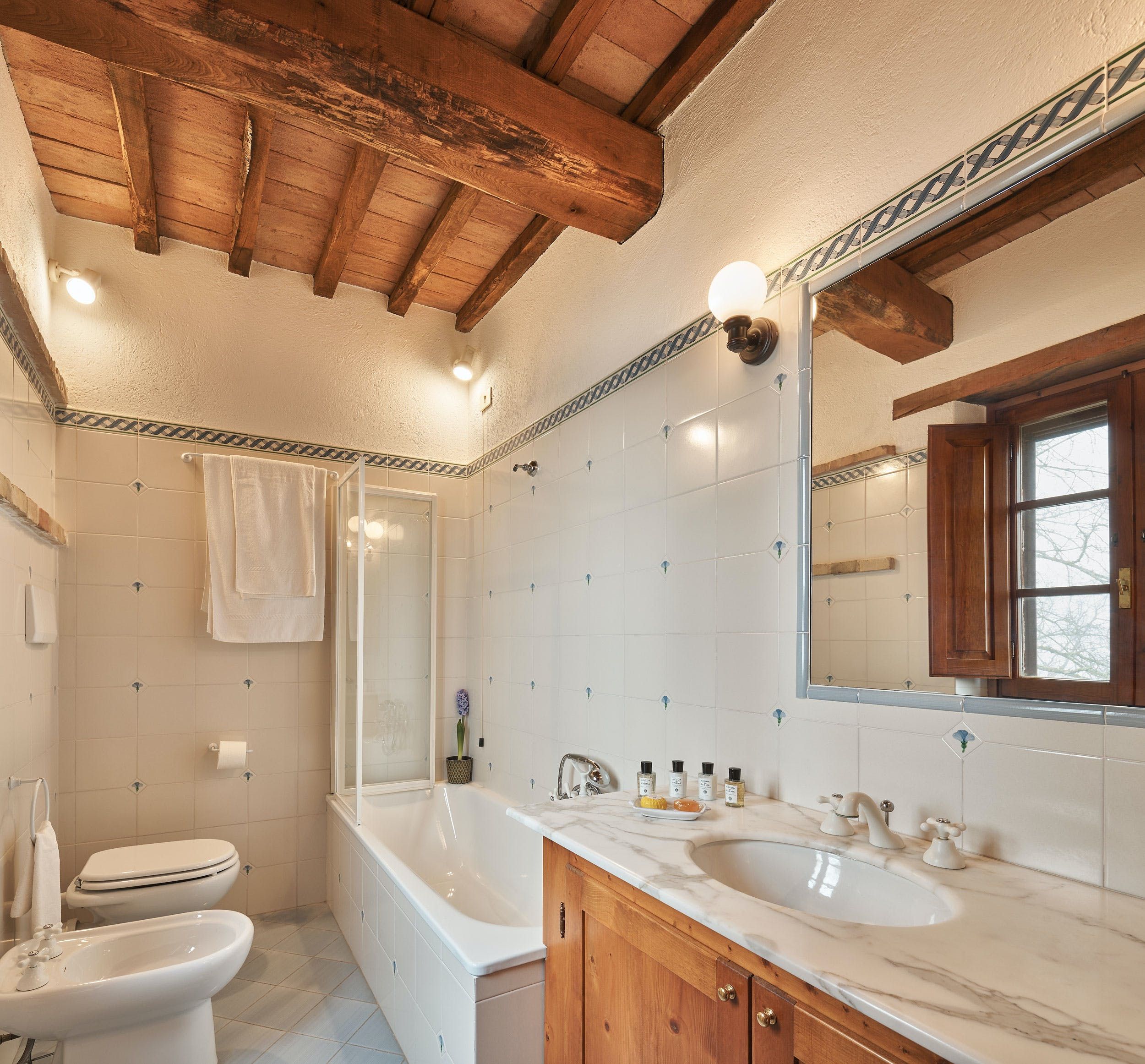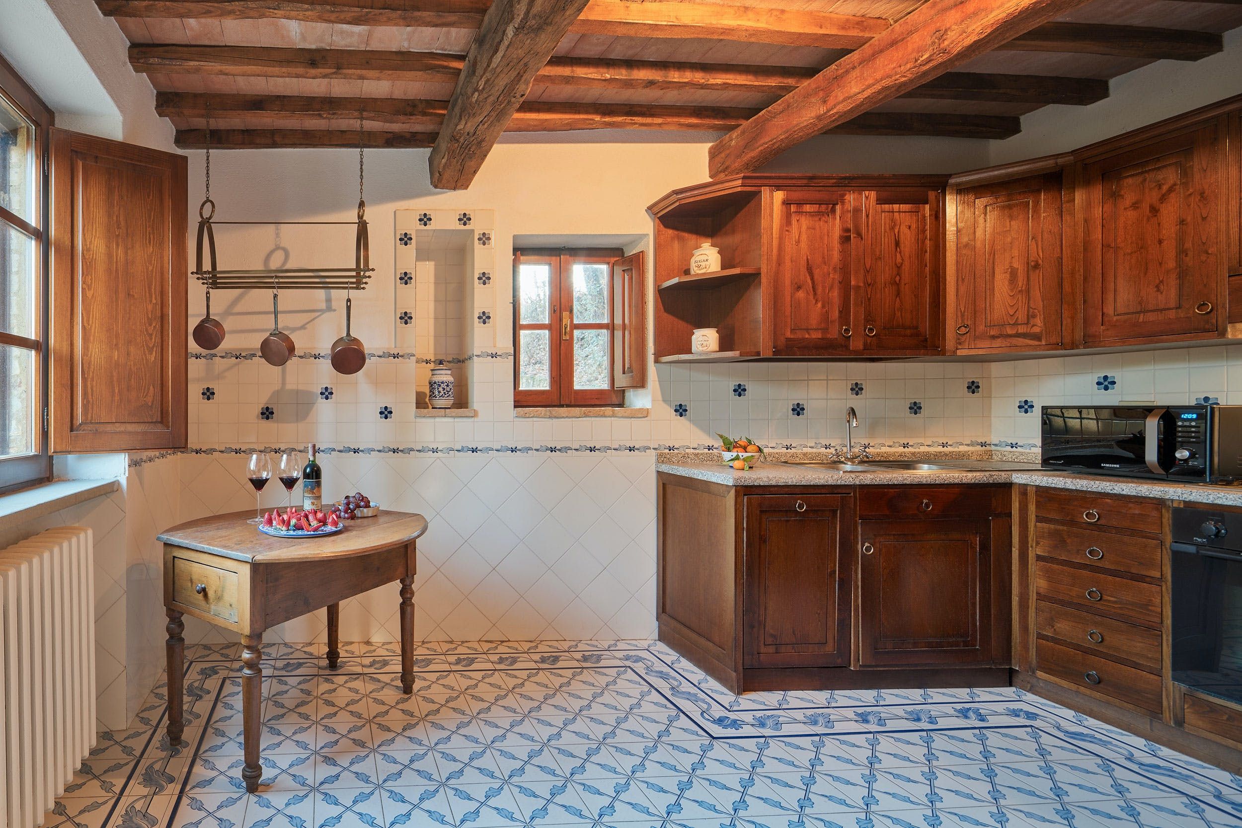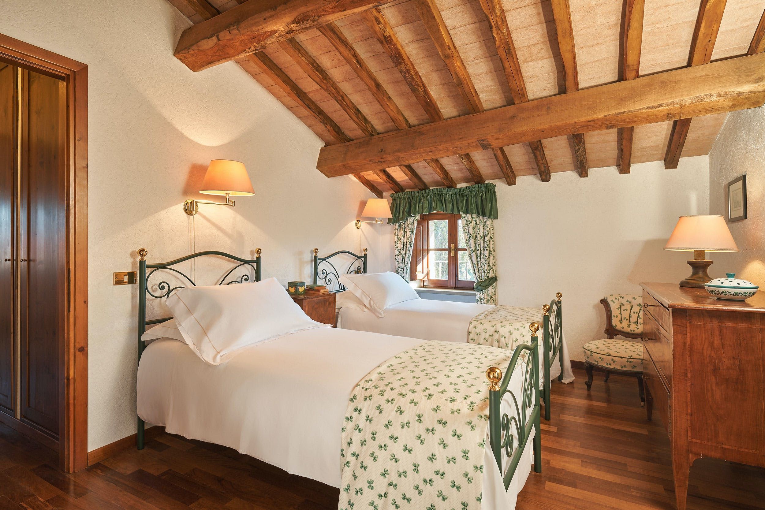 Experience Italy by laying claim to your own little village on a sprawling estate bordering Tuscany and Umbria. Made up of five houses – one converted from a hay barn, but all of them boasting traditional stone and exposed beams – the accommodation breaks down large groups into smaller parties. Though it's lacking a bit of light and some might not find the traditional decor to their taste, we like the practicality of this home, and the surroundings aren't so bad either. Green hills and oak forests stand like sentinels along the perimeter and from the right vantage you can overlook the Tiber Valley. Plus, the private pool and expansive garden will be a joy for little ones.