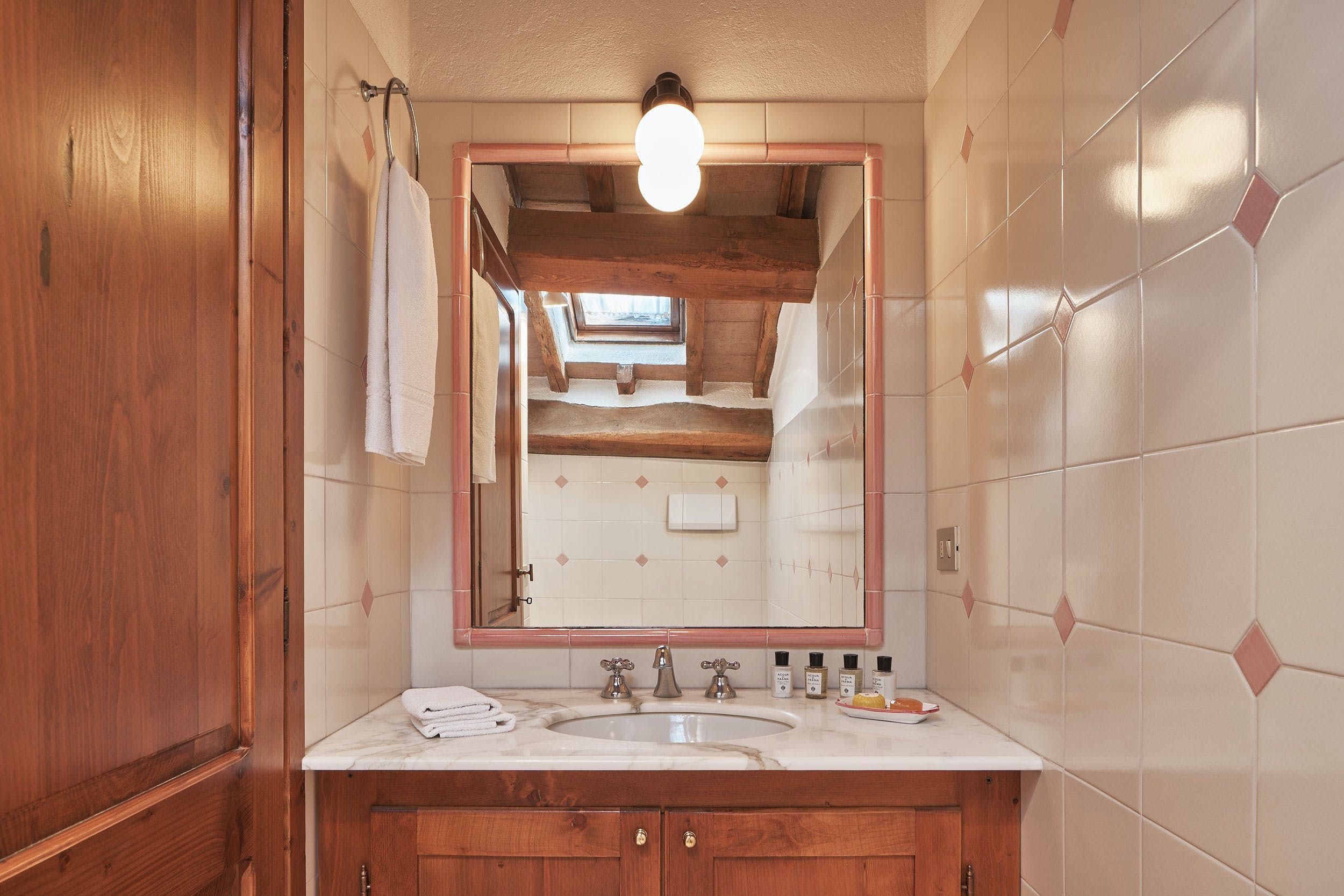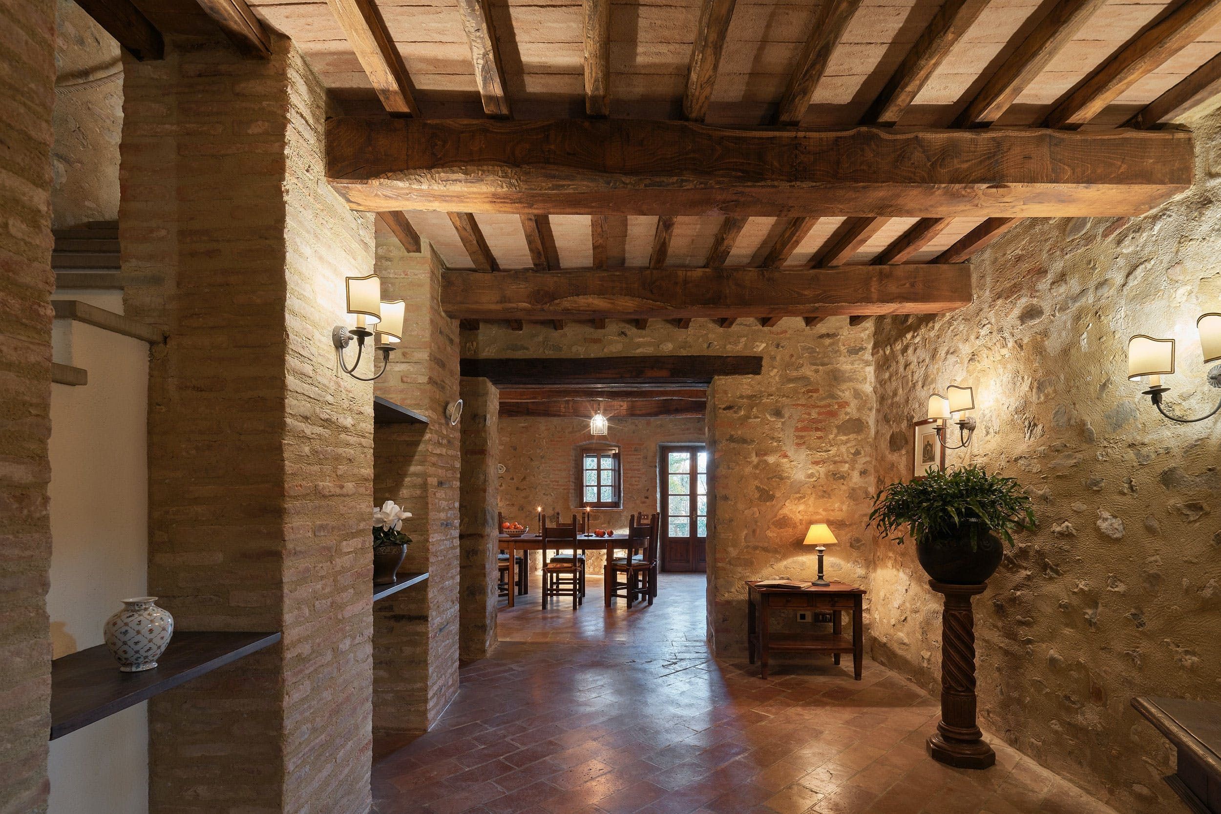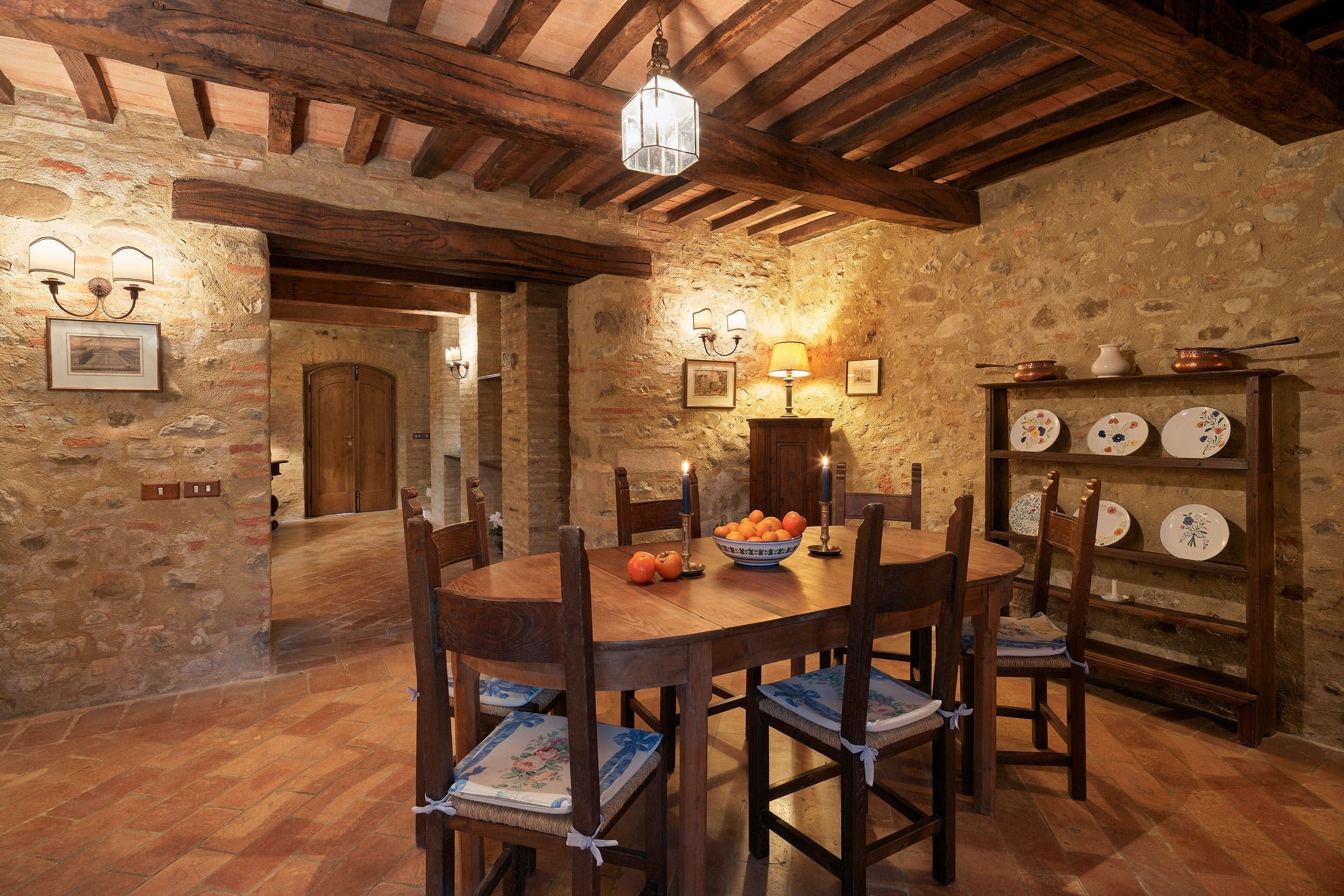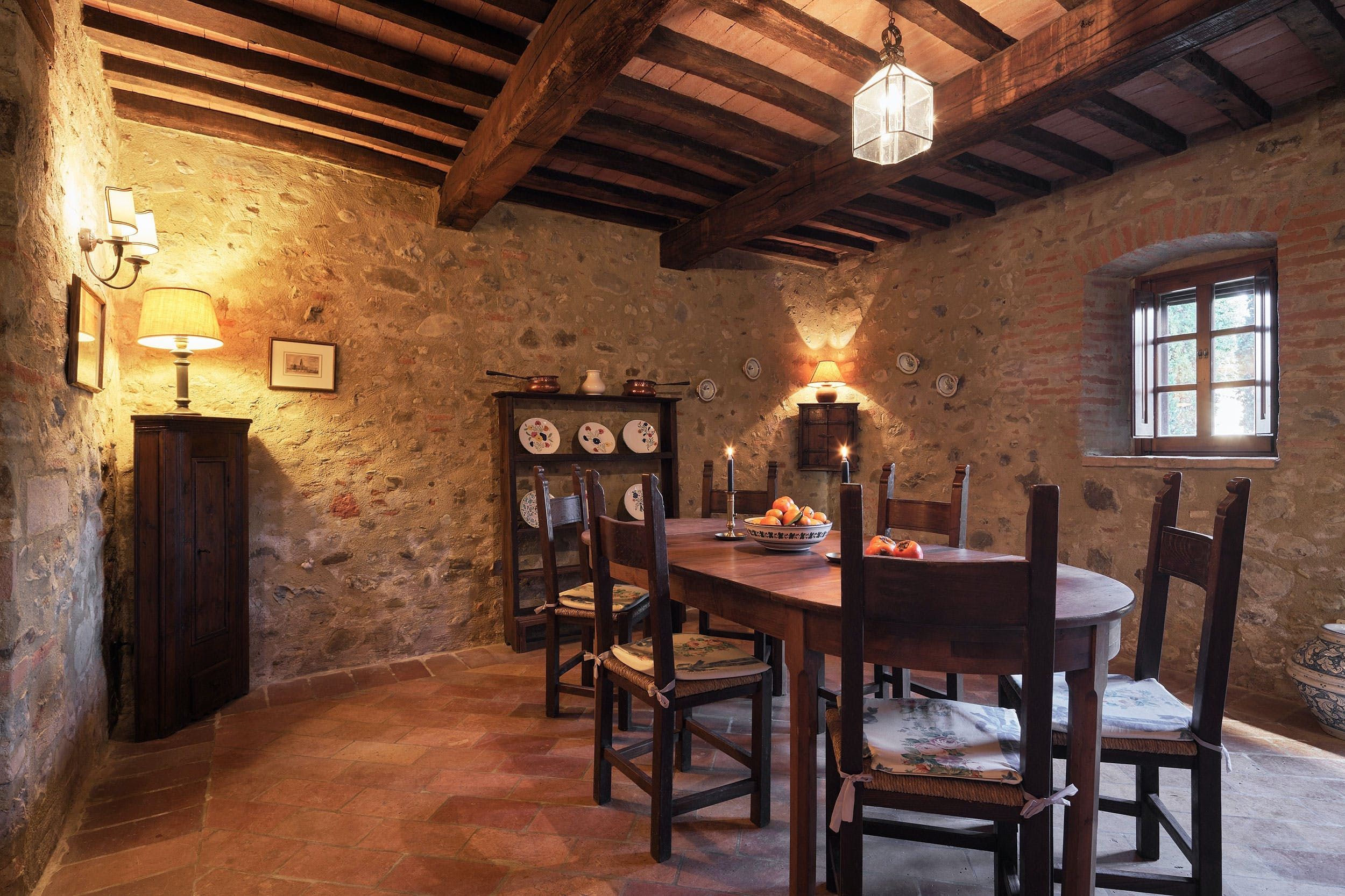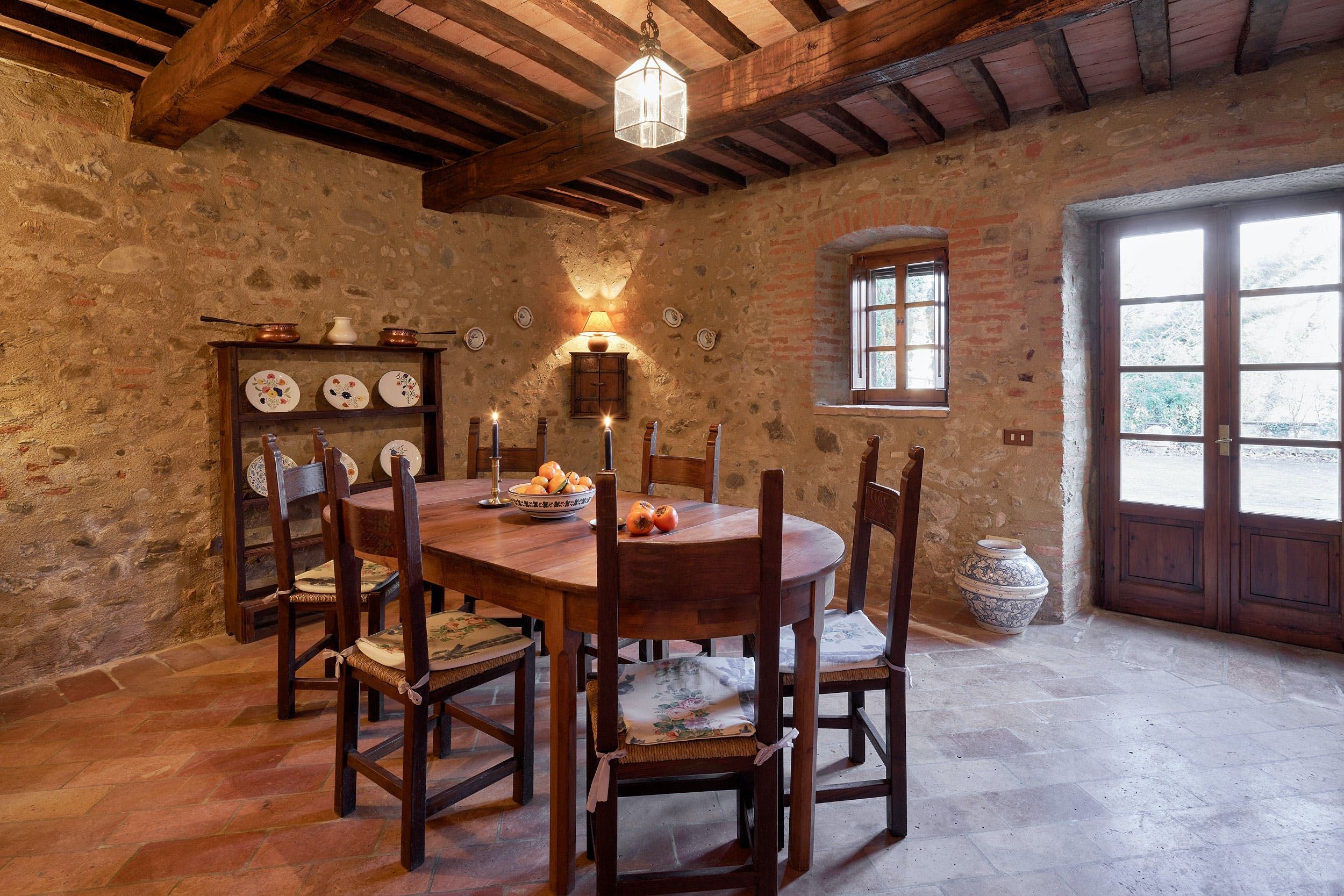 Near the border of Tuscany and Umbria, this place puts Perugia, Lake Trasimeno and Arezzo within day-tripping distance while the surroundings of lush hills and oak forests are pure peace and quiet. One of four apartments within a traditional-style villa, it’s decked out like the old world inside with a huge old stone hearth in the living room, a library and study for those working remotely and an old-fashioned kitchen. Stone steps lead to the private patio with gorgeous views over the Tiber Valley. Plus, guests here have access to the estate’s shared swimming pool and sprawling gardens.