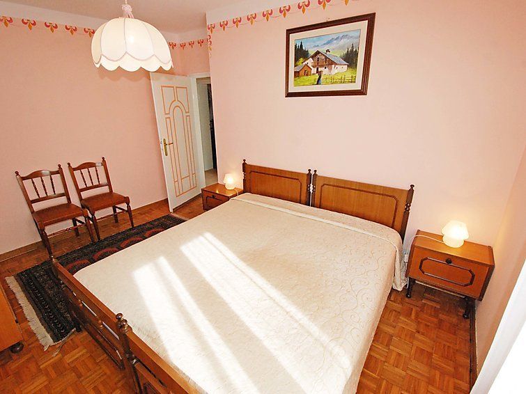 3-room apartment 75 m2 on 1st floor. Very simple and practical furnishings: living room with 1 sofabed and satellite TV. 2 double bedrooms. Dining room with dining table. Exit to the balcony. Small kitchen (4 hot plates, oven). Bath/bidet/WC. Heating. Large balcony. Balcony furniture.