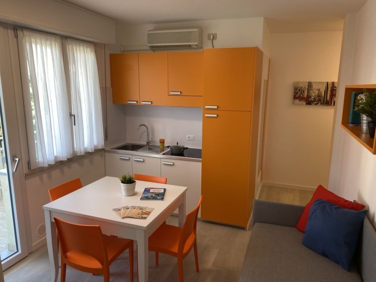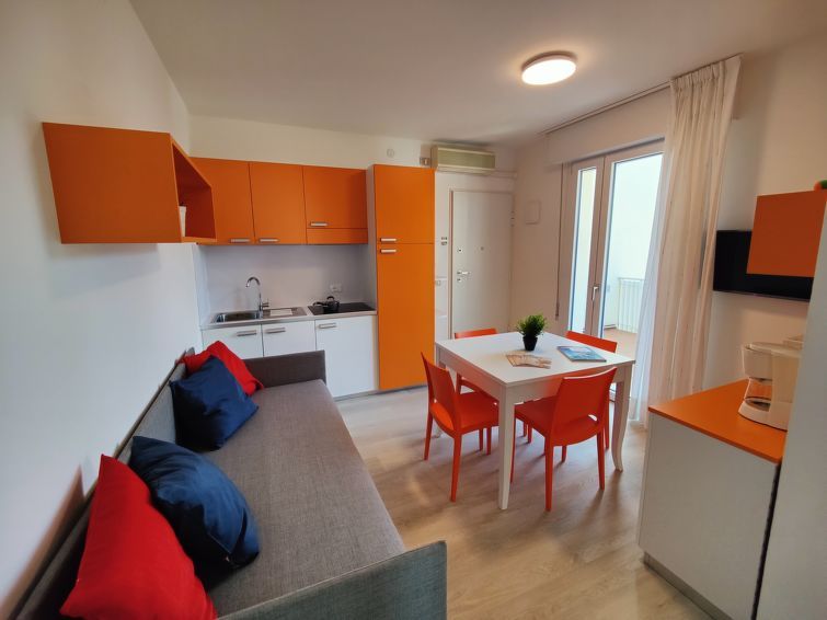 2-room apartment 35 m2, on the upper floor. Renovated in 2023, modern furnishings: living/sleeping room with 1 double sofabed, dining table, kitchen corner and satellite TV. Exit to the balcony. 1 double bedroom. Open kitchen (Gas stove, 3 gas rings, microwave, electric coffee machine).