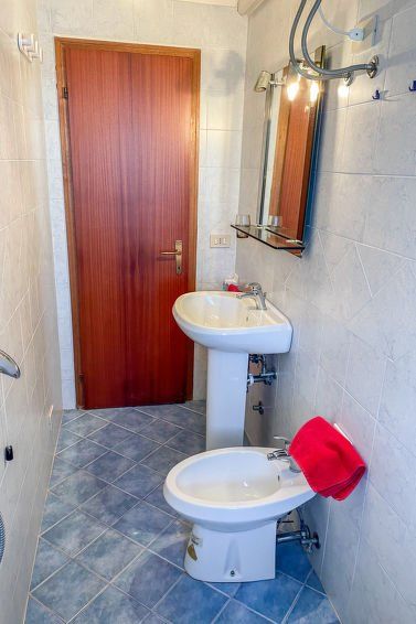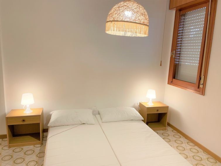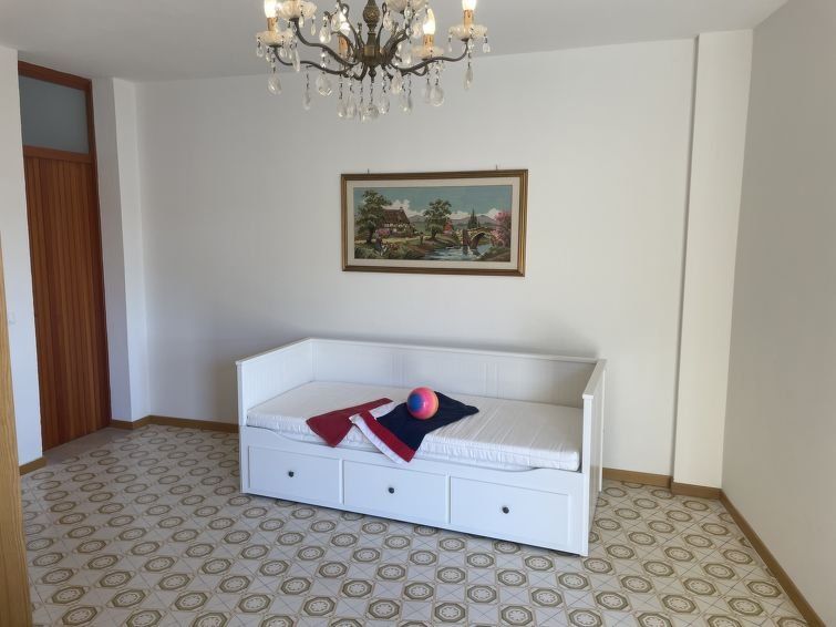 2-room apartment 60 m2 on 2nd floor. Bright, simple and practical furnishings: living/dining room with 1 double sofabed, 1 wall-trunk bed and TV. Exit to the terrace. 1 double bedroom. Kitchenette (oven, 4 gas rings, microwave) with dining table. Shower/bidet/WC. Air-conditioning.