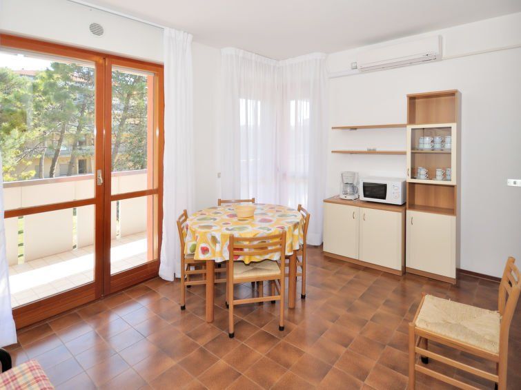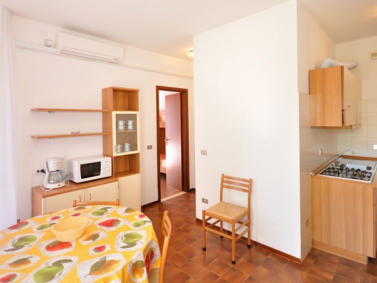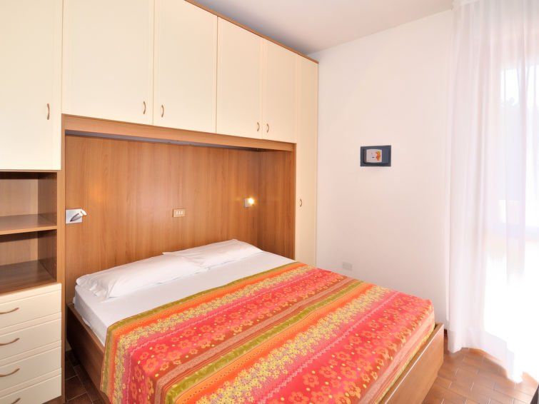 2-room apartment 42 m2, on the upper floor. Bright, practical furnishings: living/sleeping room with 1 double sofabed, dining table, kitchen corner and satellite TV. Exit to the balcony. 1 room with 1 x 2 bunk beds, 1 double bed. Kitchenette (4 gas rings, microwave, electric coffee machine).