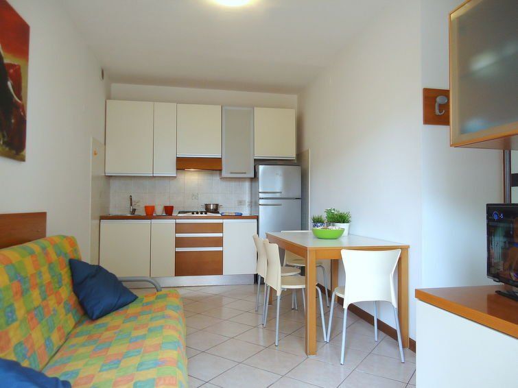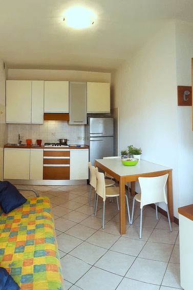 3-room apartment 50 m2. Practical furnishings: living/sleeping room with 1 sofabed, dining table, kitchen corner and satellite TV. Exit to the balcony, to the terrace. 1 double bedroom. 1 room with 2 beds. Open kitchen (Gas stove, 4 gas rings, freezer, electric coffee machine). Shower/WC.