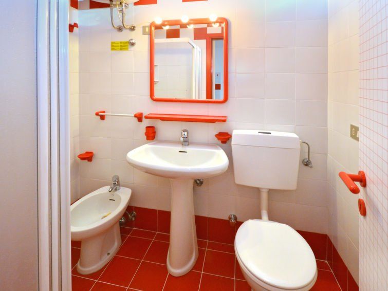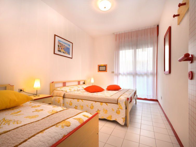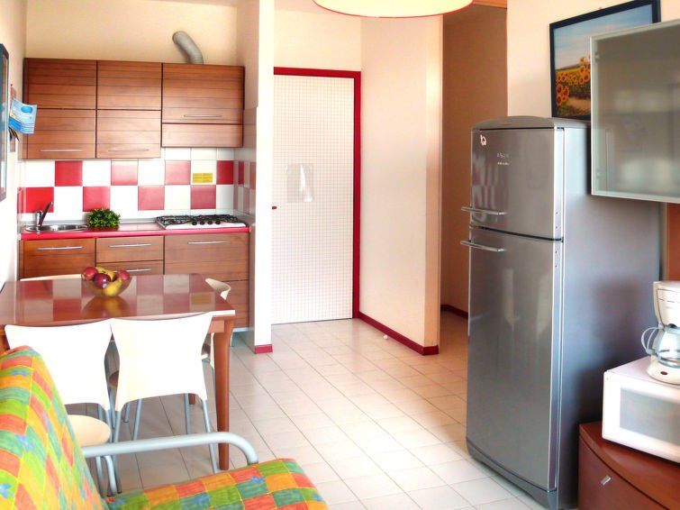 2-room apartment 35 m2, on the upper floor. Practical furnishings: living/sleeping room with 1 double sofabed, dining table, kitchen corner and satellite TV. 1 room with 1 bed and 1 double bed. Kitchenette (Gas stove, 4 gas rings, microwave, freezer, electric coffee machine). Shower/bidet/WC.
