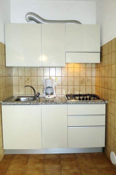 3-room apartment 50 m2. Practical furnishings: living/sleeping room with 1 double sofabed, dining table and TV. Exit to the balcony, to the terrace. 1 double bedroom. 1 room with 1 x 2 bunk beds. Kitchenette (Gas stove, 4 gas rings, microwave, freezer, electric coffee machine). Shower/bidet/WC.