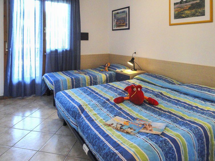2-room apartment 35 m2. Practical furnishings: living/sleeping room with 1 double sofabed (140 cm), dining table, kitchen corner and satellite TV. Exit to the balcony, to the terrace. 1 room with 1 bed and 1 double bed. Kitchenette (Gas stove, 4 gas rings, microwave, freezer, electric coffee machine).