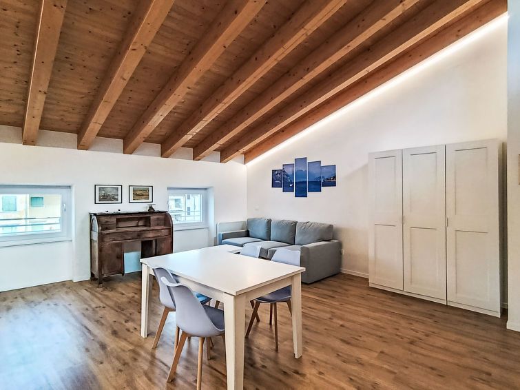 "Attico", 2-room apartment 60 m2, on the upper floor. Spacious and bright, modern and cosy furnishings: living/sleeping room with 1 double sofabed and TV (flat screen). 1 double bedroom. Kitchen (dishwasher, 2 induction hot plates, kettle, freezer, electric coffee machine) with dining table.