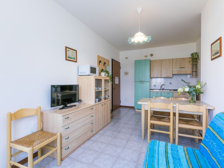 2-room apartment 35 m2. Practical furnishings: living/sleeping room with 1 double sofabed, dining table and satellite TV. 1 double bedroom. Kitchenette (4 gas rings, freezer, electric coffee machine). Shower/bidet/WC. Air-conditioning, forced-air heating. Balcony or terrace roofed.
