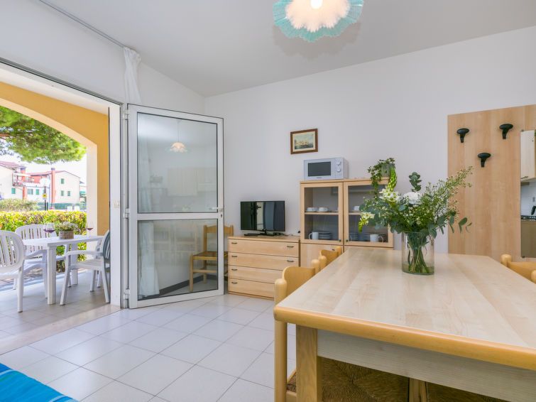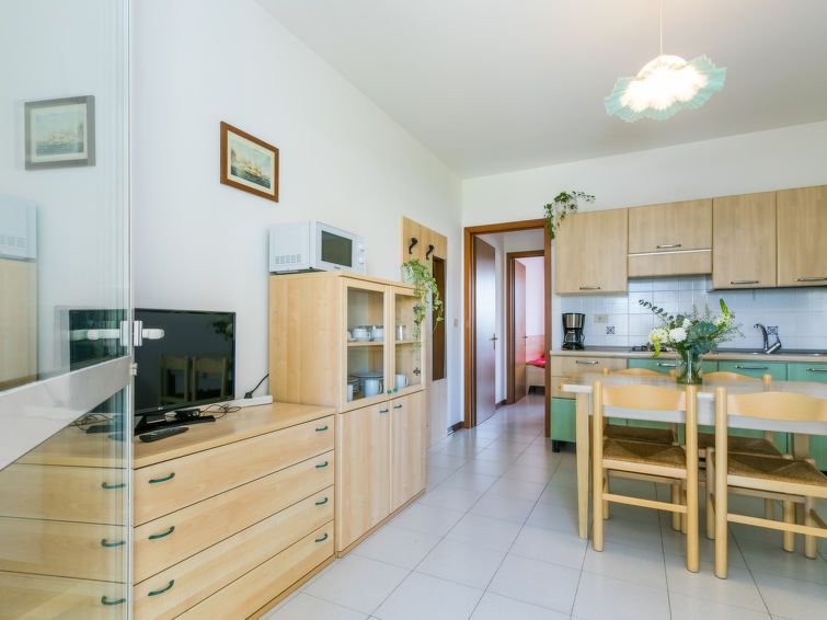 Apartment and residential complex are nice. However, there are no shelves in the kitchen and there are no hooks for towels and shelves in the bathroom. The furniture was good and everything was fine on the terrace too. We had an underground parking space, perfect. Close to the beach and supermarket and quiet. There are no parasols at the pool, so we didn't use it, even though the complex is very nice and well-kept. You also feel safe!