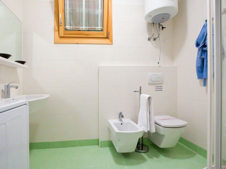 Spacious apartment, well-equipped kitchen with dishwasher, large bathroom with spacious shower and washing machine. All that's missing is a wastebasket in the bathroom, a hairdryer, and a mirror in the bedroom with two sunbeds. The hooks in both the bathroom and hallway, the mosquito nets, and the large terrace are much appreciated. The resort has a beautiful pool with whirlpools, a green area, and amenities.