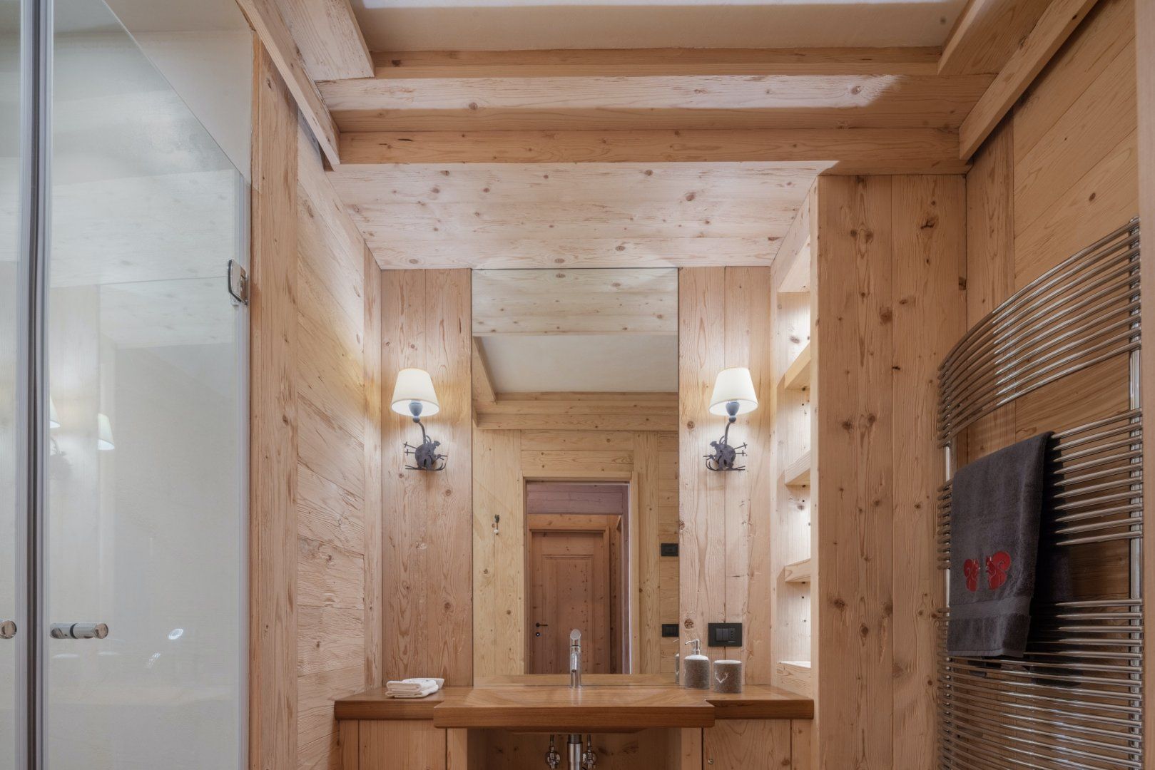 With copious amounts of wood teamed with a traditional rustic mountain design, the apartment makes for a welcoming high-altitude escape for a family or group of friends. A cosy living and dining space contains sufficient corners for everyone to claim a spot, with the adjacent kitchen equipped for all your needs despite its compact size.