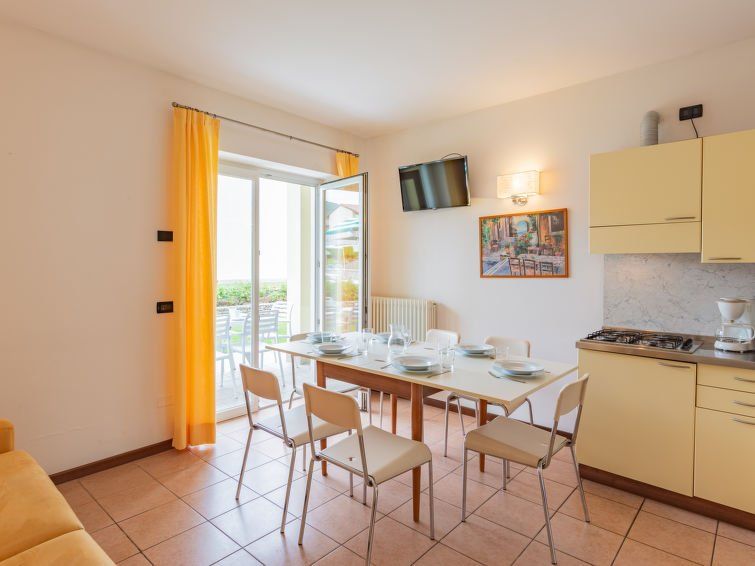 There are 4 houses, each with 4 apartments on 2 floors. In the center of the property is a well-kept pool. one parking space is available for each apartment. The property is locked in the evening/night. There are a few restaurants nearby. We recommend La Lanterna and Da Pino 2