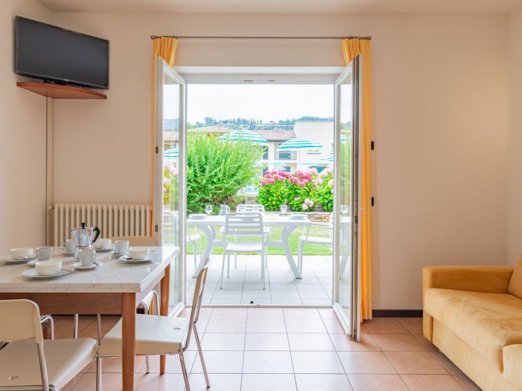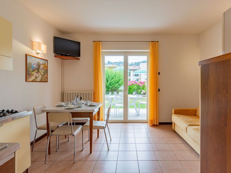 Beautiful accommodation in a well-kept complex, away from the hustle and bustle... Pool with plenty of loungers and parasols, spacious apartment with great terrace and extra toilet on the ground floor, stairs a bit steep and narrow... Clothes rack on the balcony, but no seating, kitchen relatively well equipped, we missed egg cups, kettle, and cleaning utensils (sponge, cloth, tea towel and washing-up liquid)... Floor could be a bit cleaner... Staff very friendly...