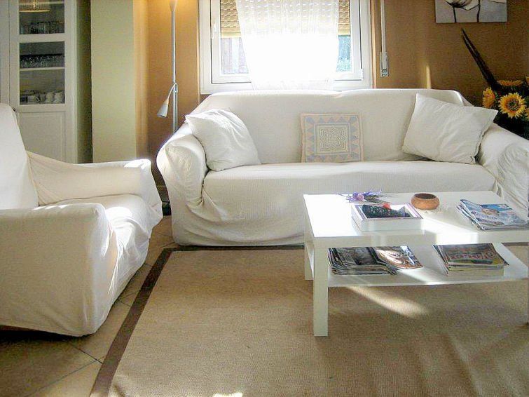 3-room house 75 m2. Beautiful furnishings: living/dining room with satellite TV. Exit to the terrace. 1 double bedroom. 1 room with 1 x 1 bunk beds, 1 french bed (160 cm). 1 room with 1 double sofabed. Kitchen (oven, dishwasher, 5 gas rings, microwave). Shower/bidet/WC. Air-conditioning (extra).
