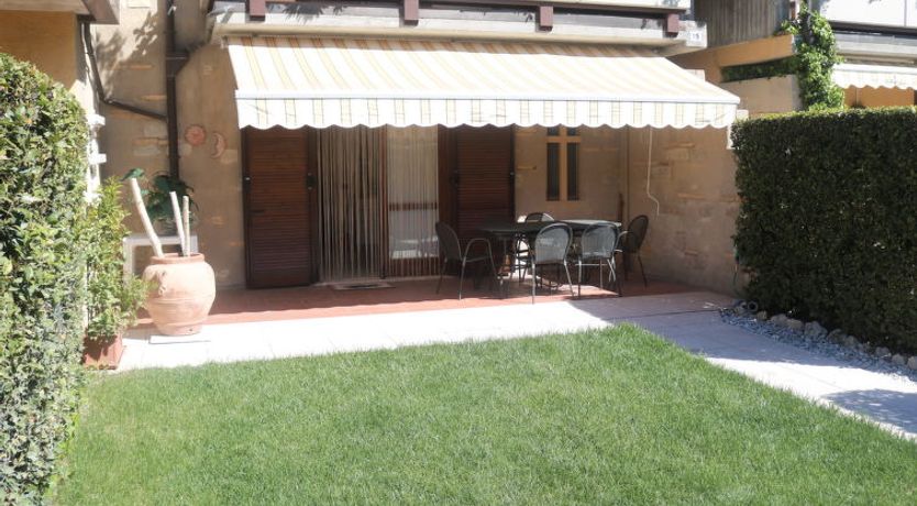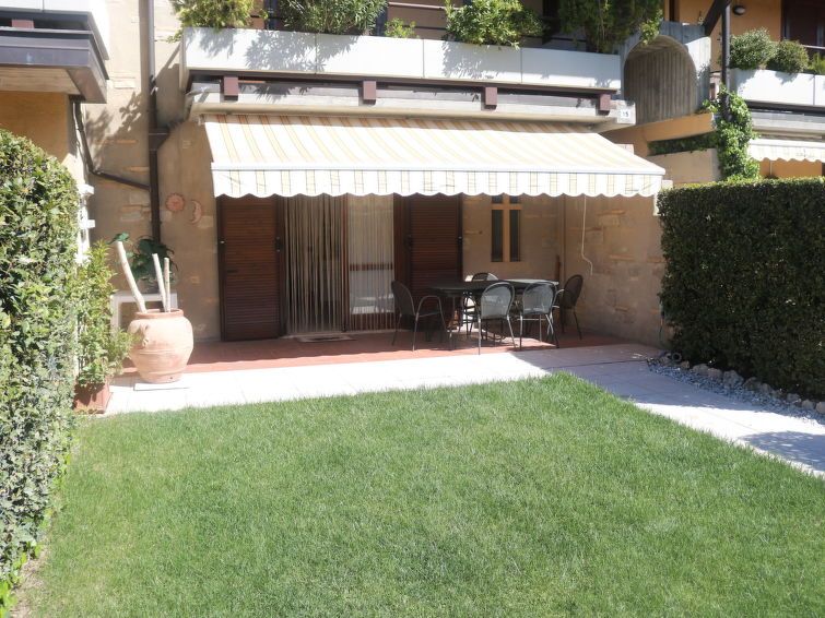 2-room apartment 50 m2, on the ground floor. Modern furnishings: living/dining room with satellite TV. Exit to the garden. Open kitchen (oven, dishwasher, 4 gas rings, microwave). Shower/bidet/WC. Gas heating (extra), air-conditioning (extra). Small terrace partly roofed, garden, lawn.