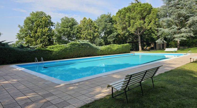 Situated on a closed wine estate between the crickets. Upon arrival at the rental office you will receive clear directions and a photo report to find the apartment. The apartment is on the 2nd floor (no elevator) and is in perfect order, nicely furnished and spacious. The washing machine, spacious refrigerator with large freezer and the balcony (with a view of Lake Garda in the distance) were nice. Also a large swimming pool and play area for the children. Shops were located further away.