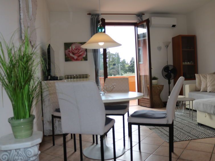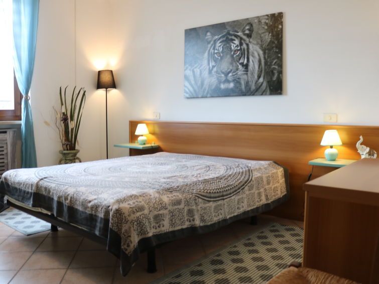 2-room apartment 45 m2 on 1st floor. Bright, comfortable furnishings: living/sleeping room with 1 sofabed, dining table and TV. Exit to the balcony. 1 double bedroom. Open kitchen (4 gas rings, toaster, electric coffee machine). Shower/bidet/WC. Gas heating (extra), air-conditioning (extra).