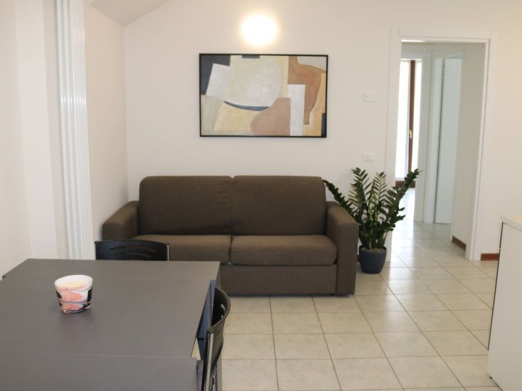3-room apartment 60 m2, on the ground floor. Comfortable furnishings: living/dining room with TV. 1 double bedroom. 1 room with 1 bed and 1 pull-out bed. Open kitchen (oven, 4 gas rings). Shower/bidet/WC. Gas heating (extra), air-conditioning (extra). Terrace, south-west facing position.