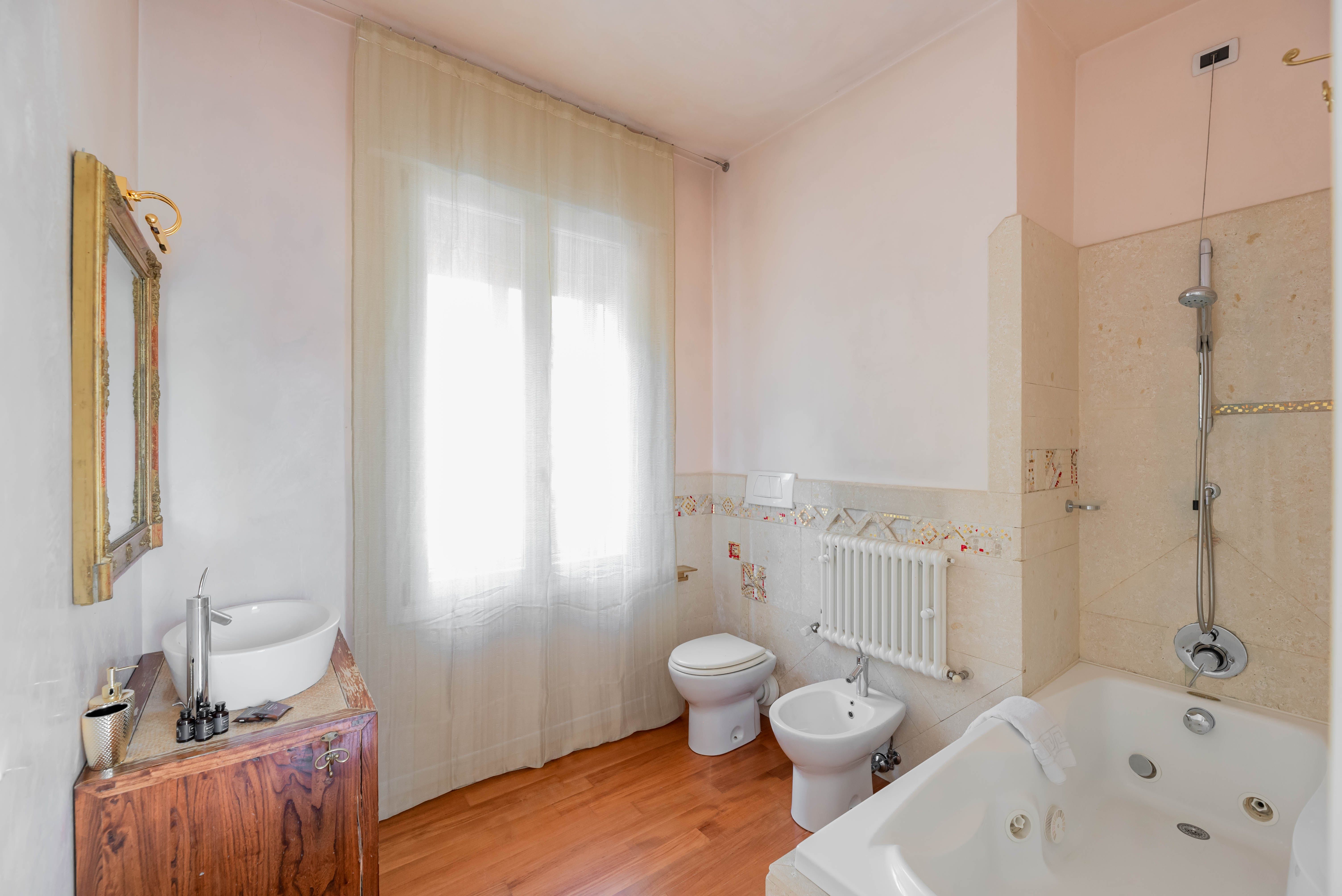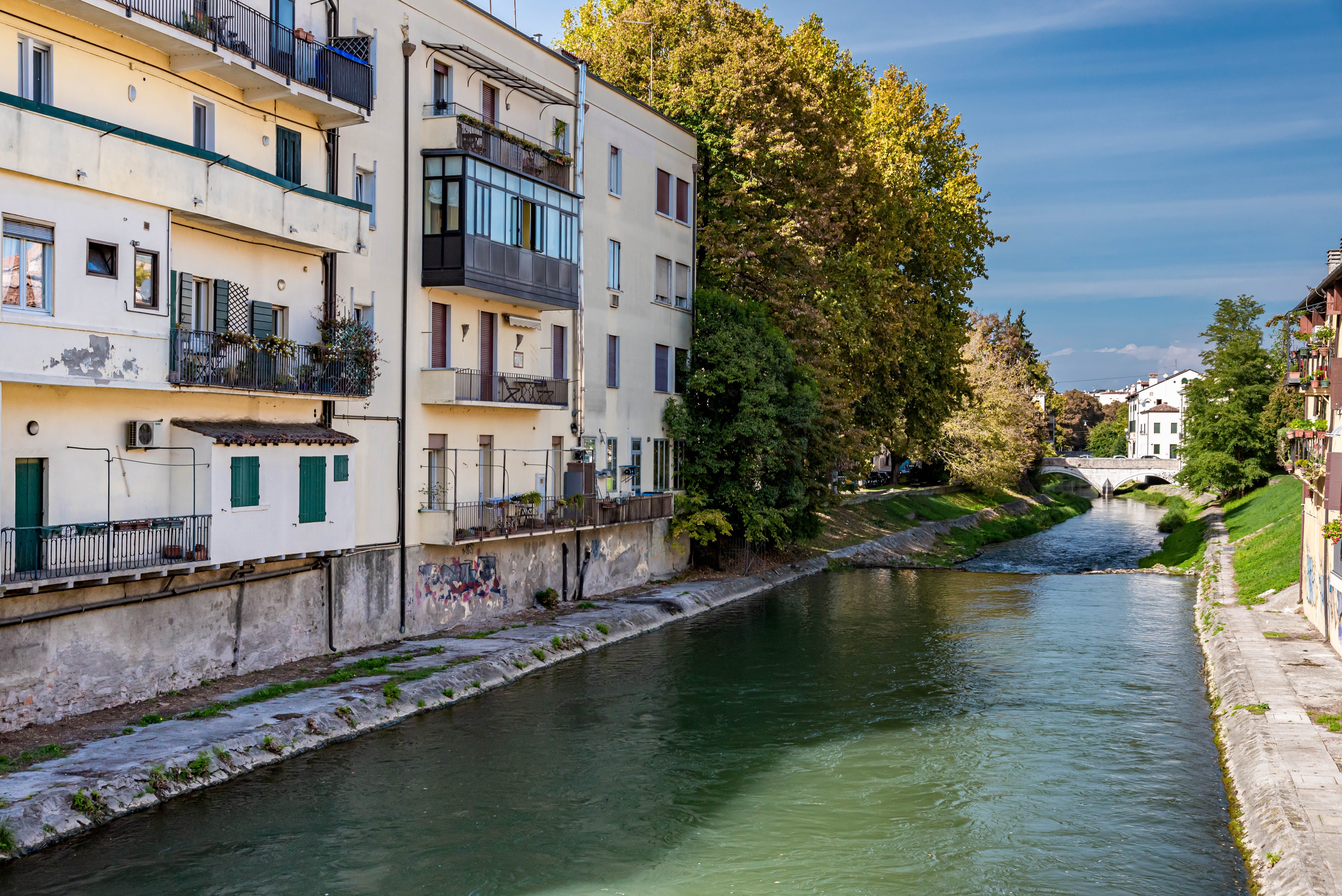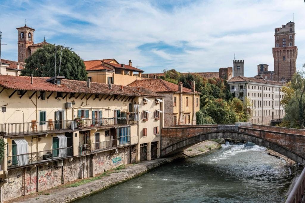 Housed in a historic building, this apartment is situated in the Riviere Esterne neighbourhood of Padua. While you'll need to take the stairs up to the home's entrance, it has two small balconies – one overlooking the district’s internal canal and another over the Riviera Paleocapa. If you need to catch up on work, there’s a study area here too, but we bet you’d prefer to explore this cultural city. Known for its frescoes such as those in the Scrovegni Chapel, there’s plenty to see. The iconic Specola is a five-minute walk, while an eight-minute stroll will take you to Piazza Duomo and the centre of this university town is ten minutes on foot.
