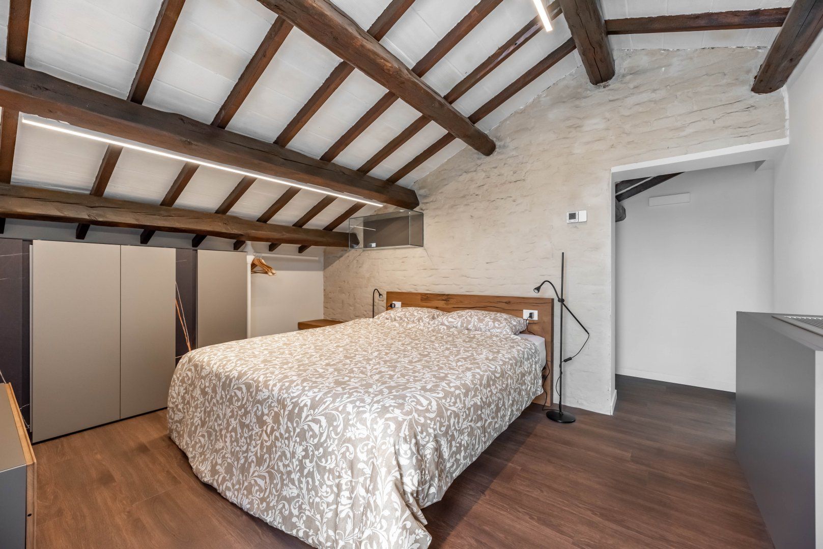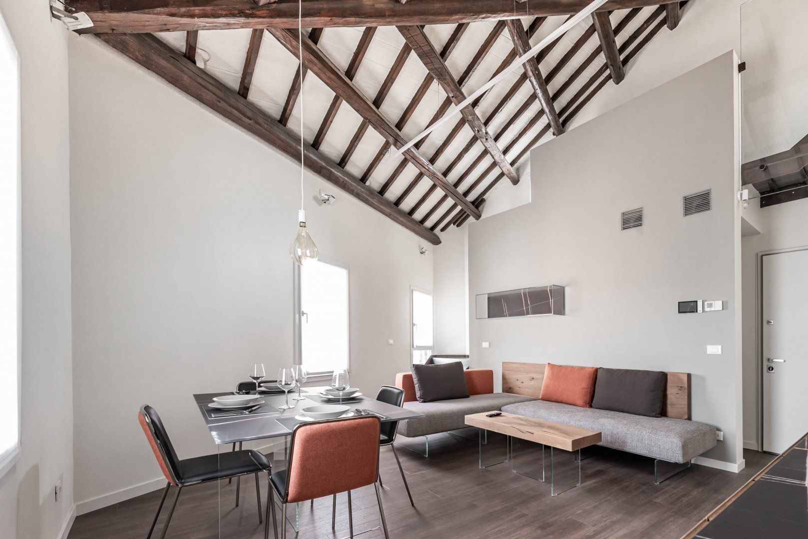 Ideally positioned in the Porta Trento area of Padua, this ultra-modern apartment is perfect for a couple looking to explore the city – with a ten-minute walk taking you to Scrovegni Chapel and the piazze – a neighbourhood full of restaurants, bars and beer houses. Nestled within 16th-century walls on the second floor of a renovated historic building, this apartment comes equipped with modern appliances and domotics – while much of the home’s characteristic elements have been kept – think original stone and vaulted ceilings for a combination of charm and contemporary living. A real highlight is the large terrace accessed from the bedroom – here you’ll feel fully immersed in the history along Padua’s arcaded streets.