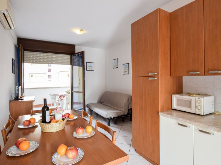 3-room apartment 45 m2. Practical furnishings: living/sleeping room with 1 double sofabed, dining table, kitchen corner, TV, air conditioning and forced-air heating. 1 double bedroom. 1 room with 2 sleeping facilities. Open kitchen (Gas stove, 4 gas rings, microwave, freezer). Shower/bidet/WC.