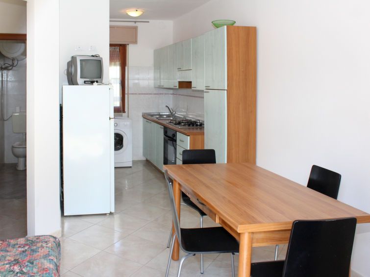 3-room apartment 40 m2. Practical furnishings: living/sleeping room with 1 sofabed, dining table, TV, air conditioning and forced-air heating. Exit to the balcony, to the terrace. 1 double bedroom. 1 room with 1 bed and 1 double bed. Kitchenette (Gas stove, 4 gas rings, microwave, freezer).