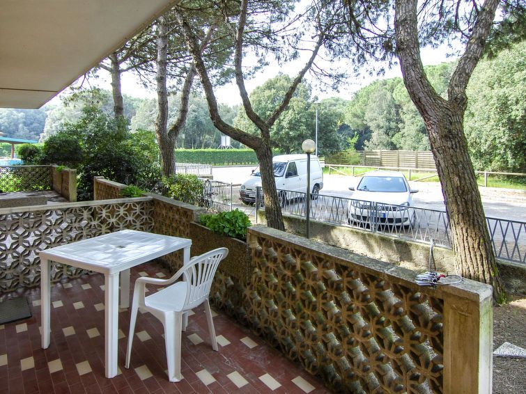 2-room apartment 35 m2 on 2 levels. Practical furnishings: living/dining room with dining table, kitchen corner, digital TV and flat screen. Exit to the terrace. Open kitchen (Gas stove, 4 gas rings, freezer). Upper floor: 1 room with 1 x 2 bunk beds, 1 double bed. Exit to the balcony.