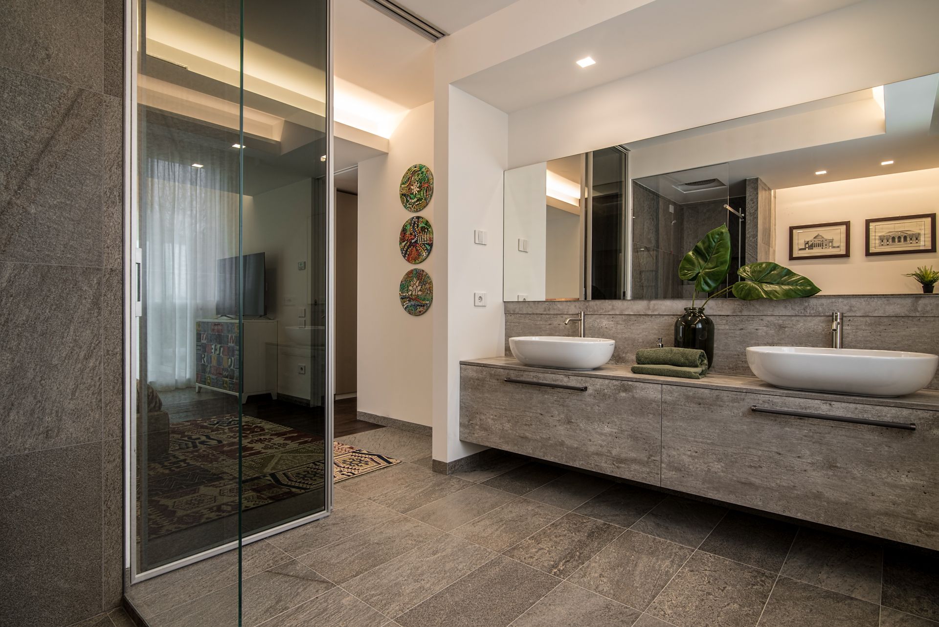 This Italian home offers the best of both worlds – you’re in a peaceful spot, yet only a fifteen-minute drive from the historic city of Padua. With huge windows overlooking the garden, and glass doors which open directly onto the terrace, indoors and outdoors are well connected here. Lazy days can be spent lounging by the private pool, or cooking up an alfresco feast on the outdoor grill. And when you’re ready for a day trip, the must-see city of Venice is only a twenty-five minute car ride away.