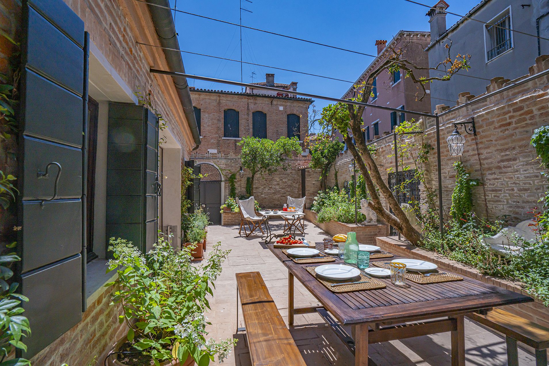 With its own terrace jealously hidden behind brick walls and bordered by a canal, this Dorsoduro home is perfect for those looking for their own secret garden in the heart of Venice. Upstairs, both bedrooms have balconies overlooking the terrace that create the sense you're in your own private world. That said, you won't be disappointed if you head out – you don't need to walk for long before you spot a famous landmark or find a delicious local eatery.