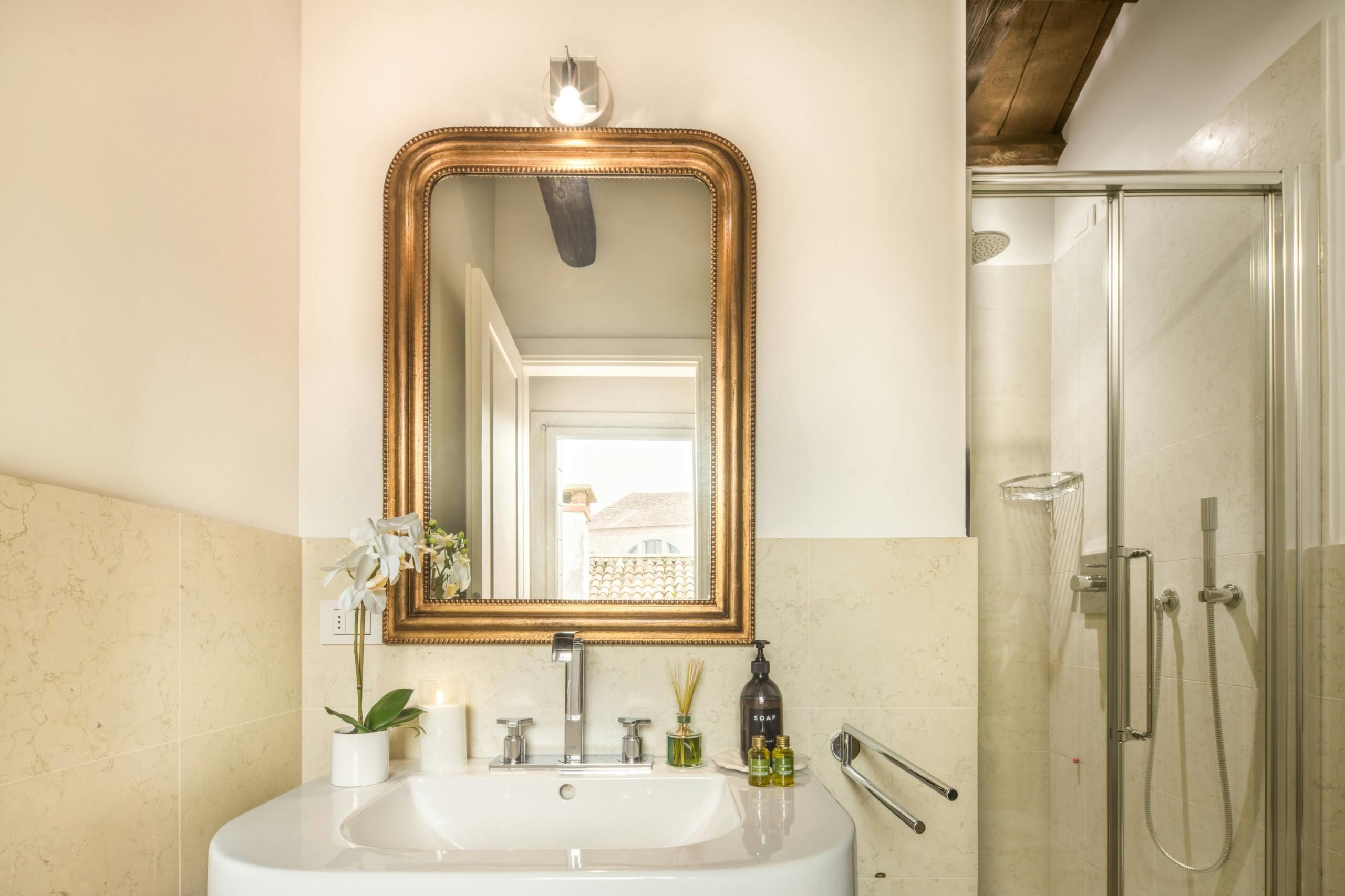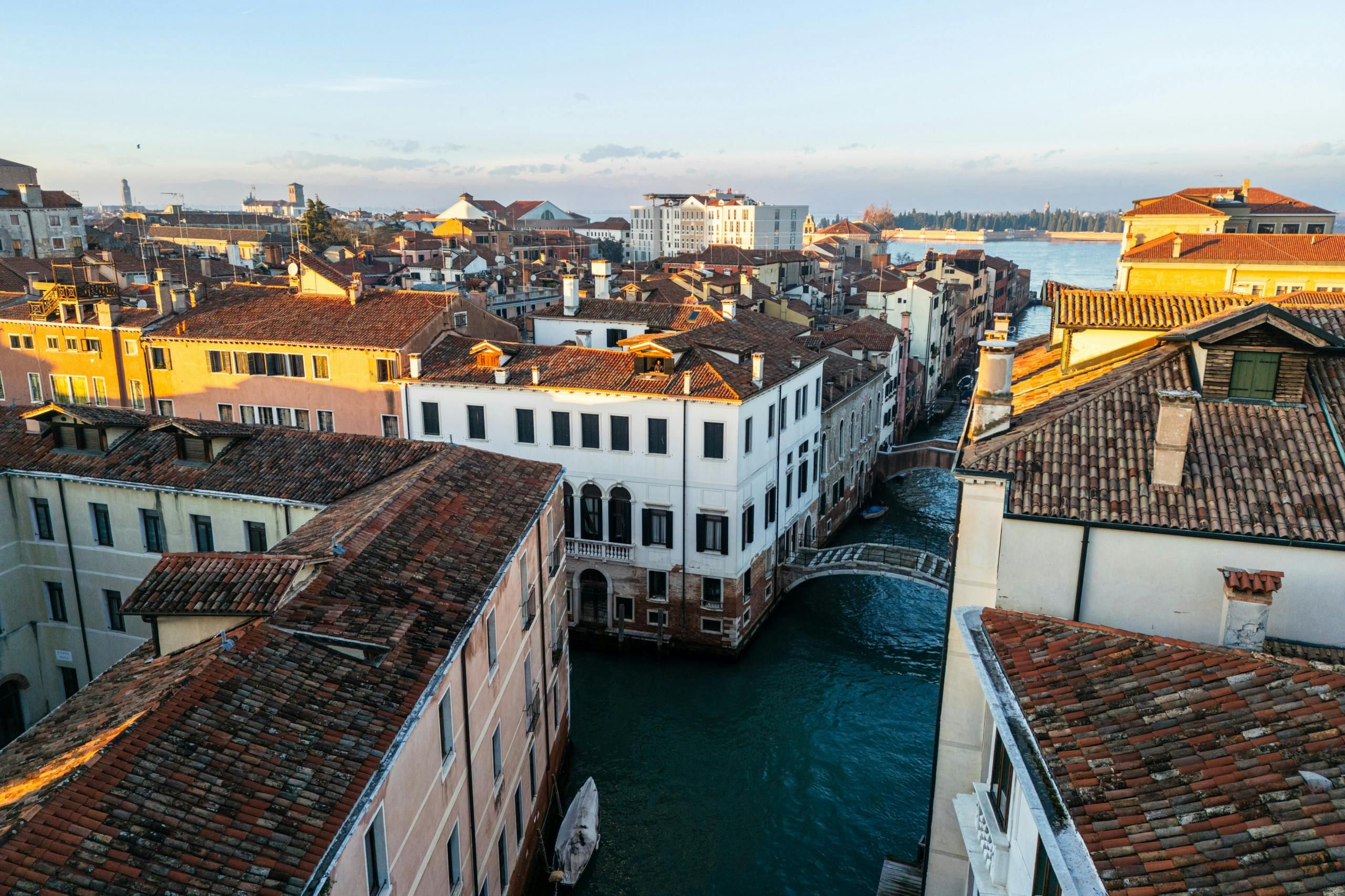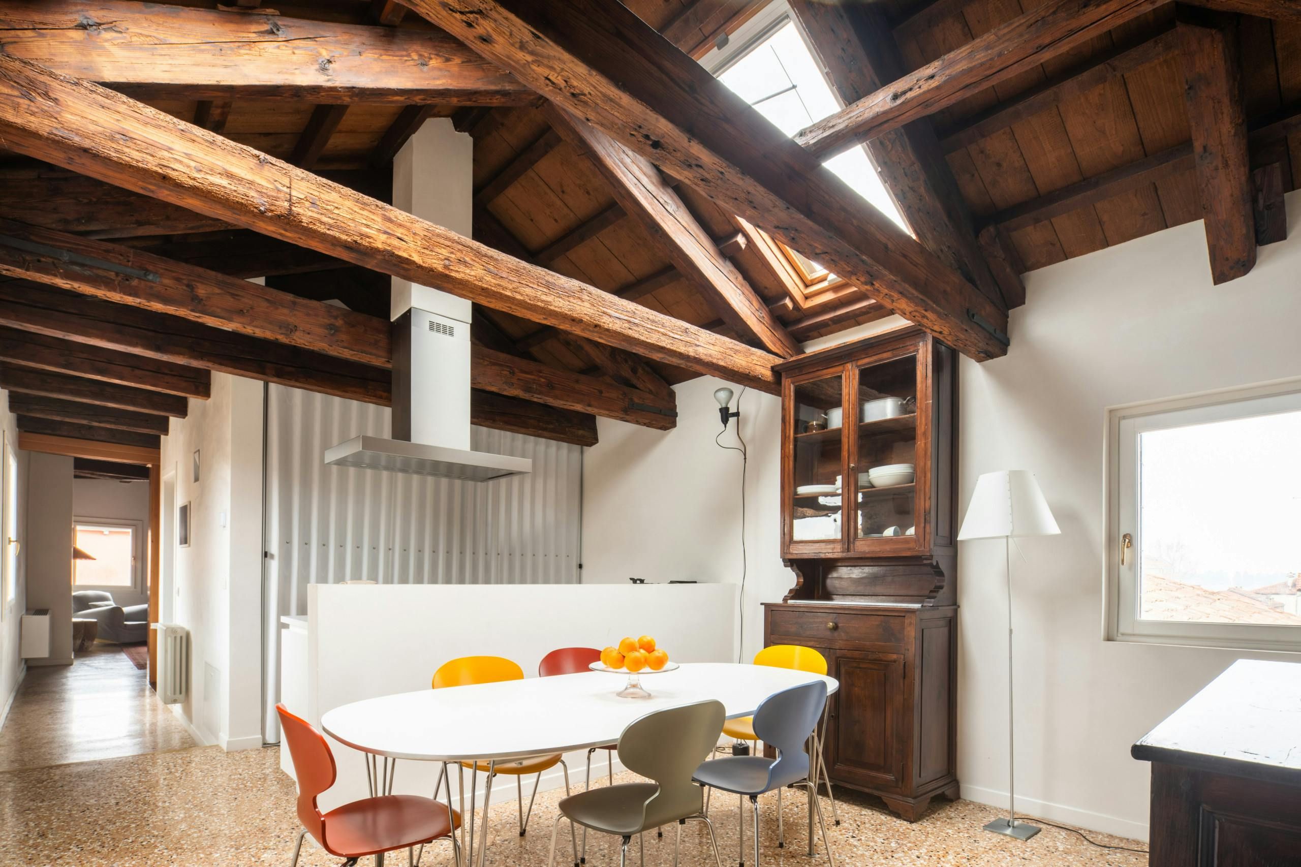 Reached by a private bridge, this historic home has a wonderful Venetian setting. It’s just a twelve-minute walk from Piazza San Marco and nine minutes from the Rialto Bridge. A few vaporetto stops are also within walking distance, so reaching Marco Polo airport and the islands of Murano, Burano, Torcello, and the Lido is easy. Inside this apartment, you can watch gondolas passing on the canal or take in the vistas over the terracotta rooftops. The decor is traditional, and there’s a lived-in vibe, so this home may not suit minimalists. But if you need to work from home, you’ll be glad to know there are a couple of desks here.