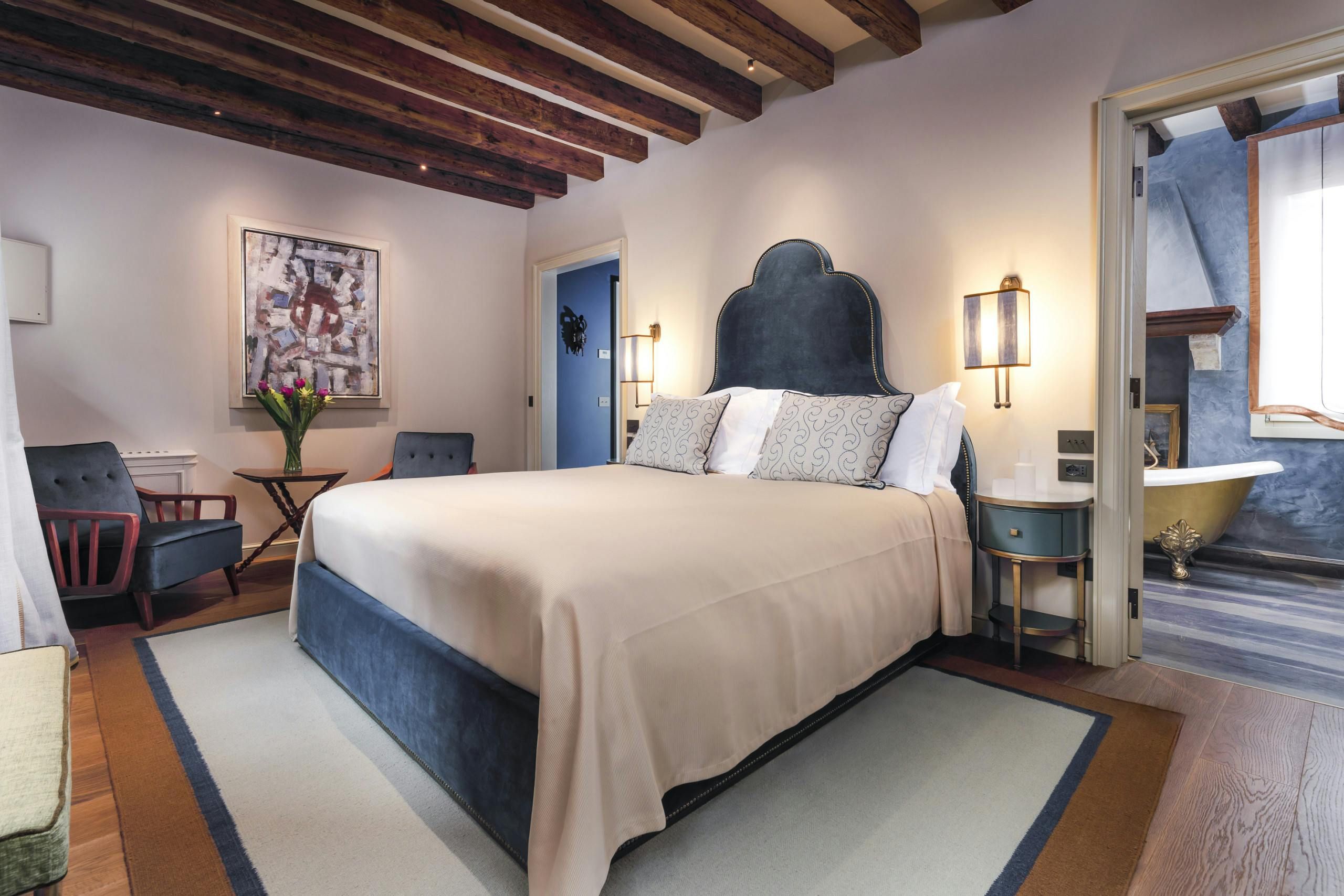 This art-filled home is just as impressive as its location on the Zattere waterfront. Moments from the Peggy Guggenheim Collection and the Gallerie dell'Accademia as well as a wonderful selection of restaurants, this is the perfect setting for an idyllic Italian stay. You’ll also have access to a serene private courtyard – a rare treat in this location. Inside, there's something to admire in every corner thanks to the unique collection of art and furnishings. There’s also a custom-built library, a wine cellar and an independent studio (with its own entrance) on the ground floor – perfect for guests seeking a little extra privacy.