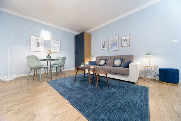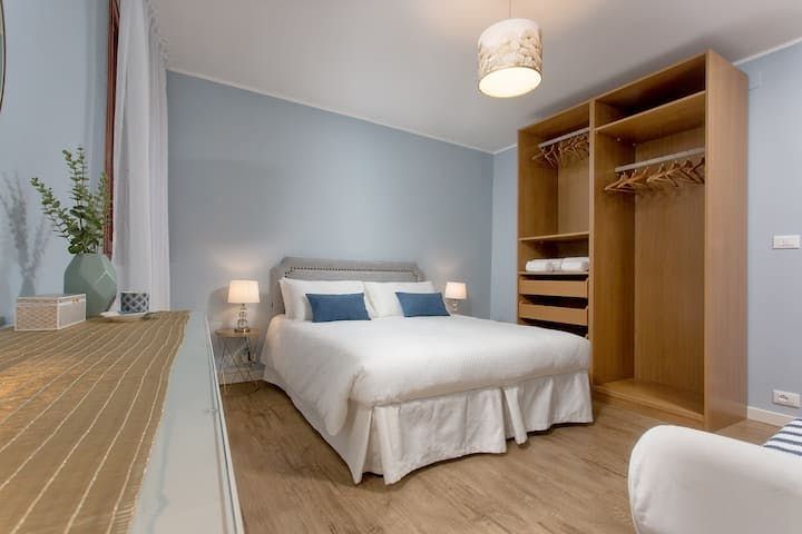 After a day exploring the busy streets and waterways of Venice, this apartment is the perfect spot to retire to. The soothing blues, greys and teals are reminiscent of the canal system just outside your window and wooden floors add a touch of class. The full kitchen has everything you need if you’re not too busy exploring the endless restaurants on your doorstep and breakfasting on the plush velvet chairs is a delight with the windows thrown open and the sounds of the gondoliers drifting in.