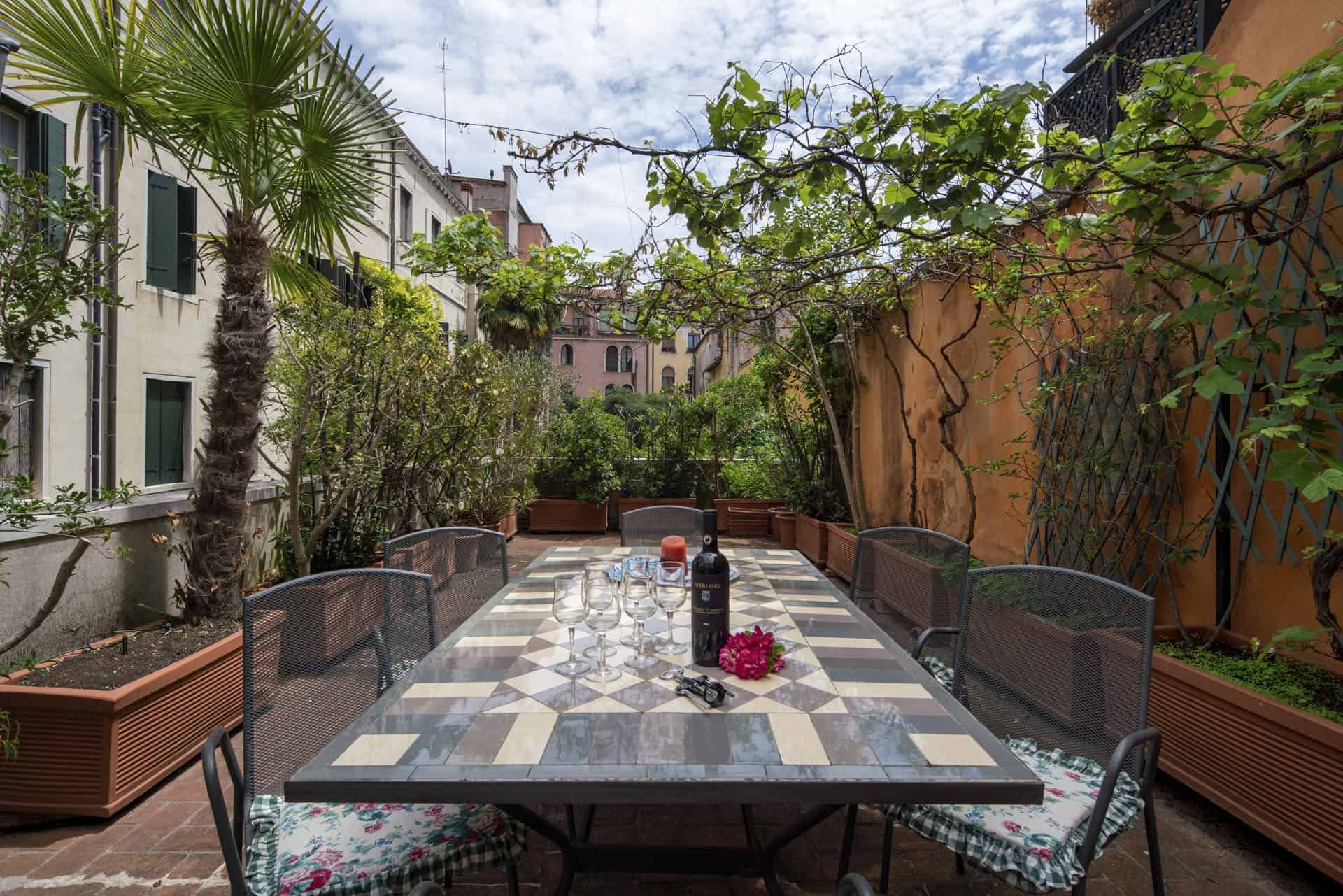 The home’s crowning glory, however, is its two large terraces, one of which is sheltered by a beautiful arch of plants that creates a great shaded outdoor spot, even on the hottest of days. After a day exploring the city – admiring the views on Accademia Bridge and roaming the waters on a boat excursion – enjoy a perfect alfresco dinner of Italian pizza on pasta on the fantastic terrace, perched above the middle of the city.