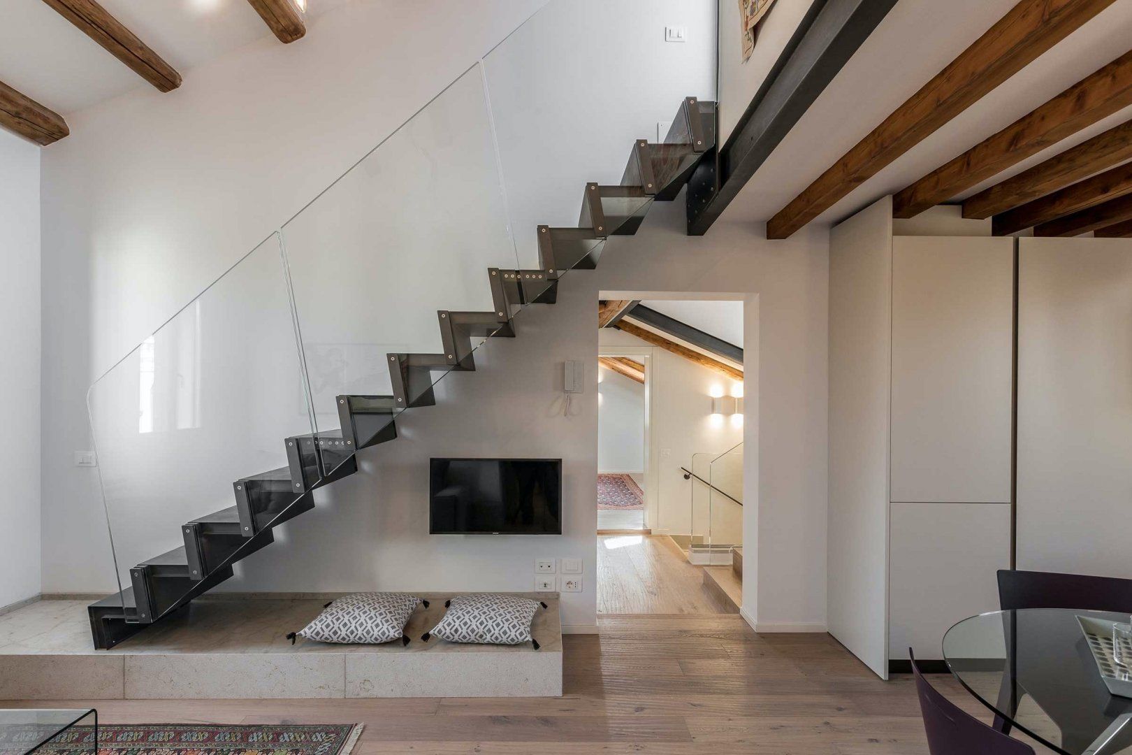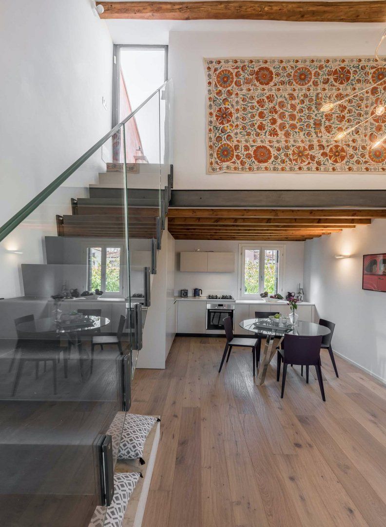Home truths: *The apartment's on the second floor of a building with no elevator, so it might not be suitable for guests with reduced mobility *The home can be booked out in conjunction with the building's bottom two floors to accommodate up to thirteen guests across six bedrooms *The second bedroom can be arranged as a king-size bed or twin singles as preferred *As is the case with the majority of homes in Venice, there's no private parking available, but the nearest Vaporetto stop is only a minute's walk away *Though there isn't a dedicated desk here, the dining table doubles up as a laptop-friendly workspace *This home is in a central spot, so noise is to be expected