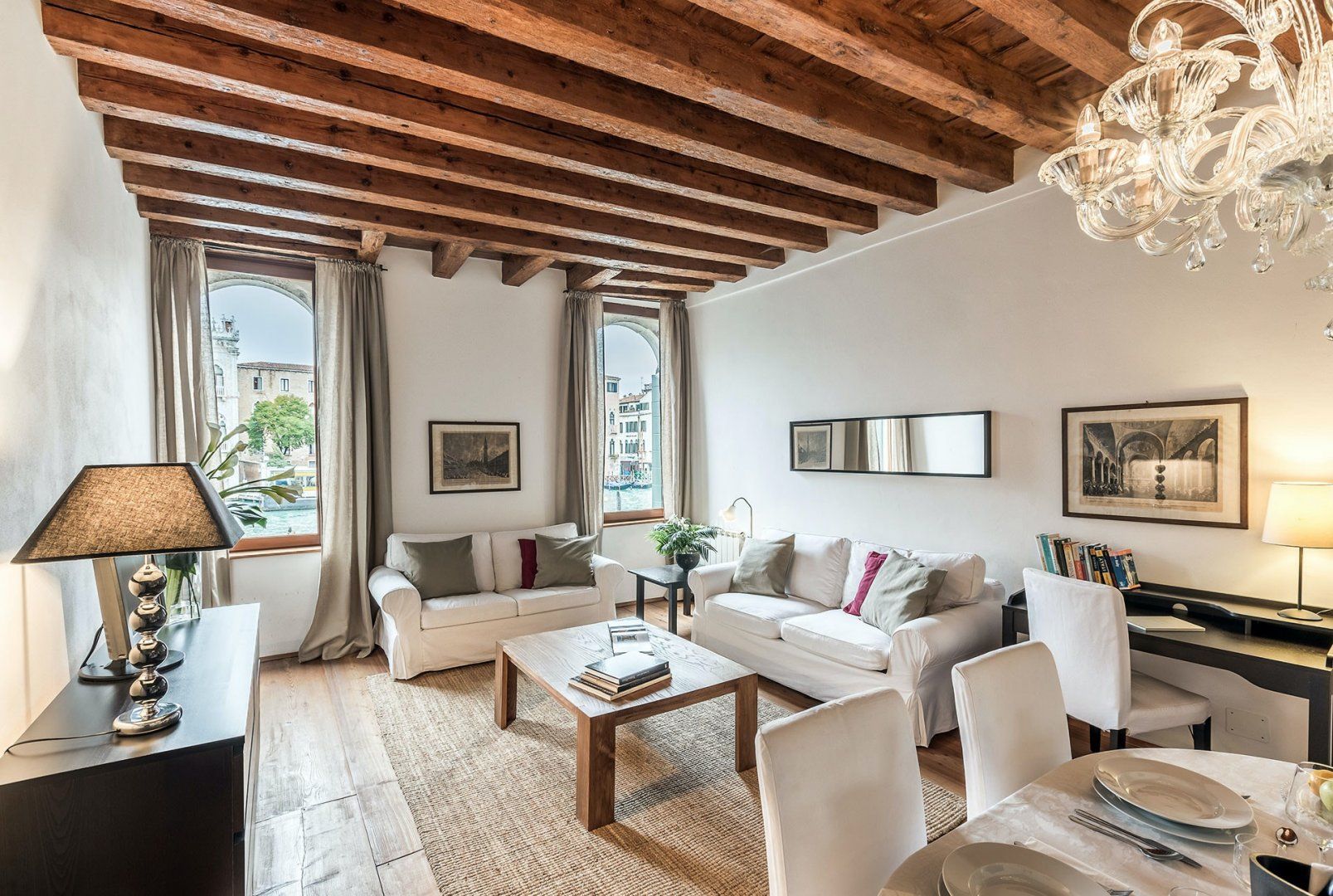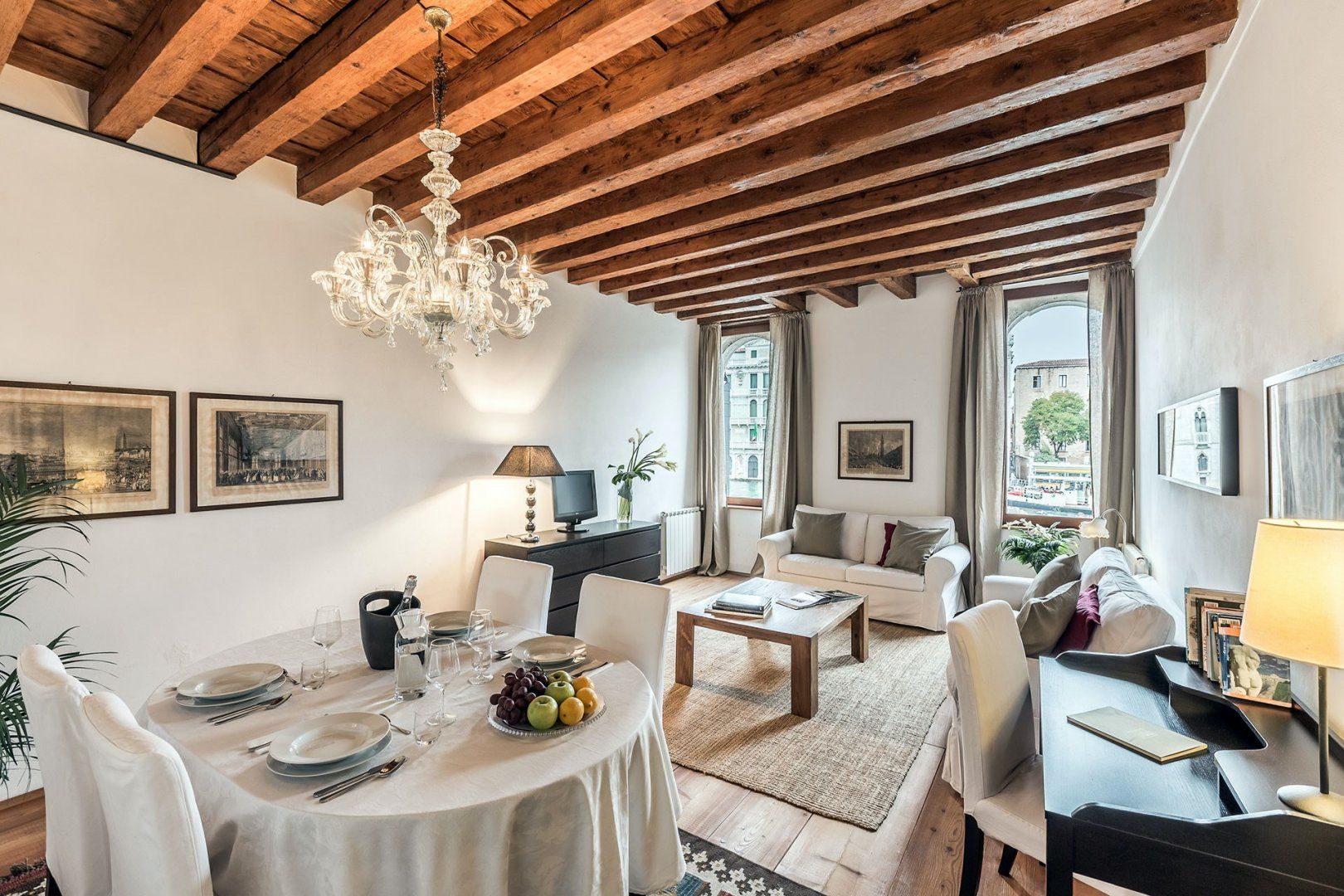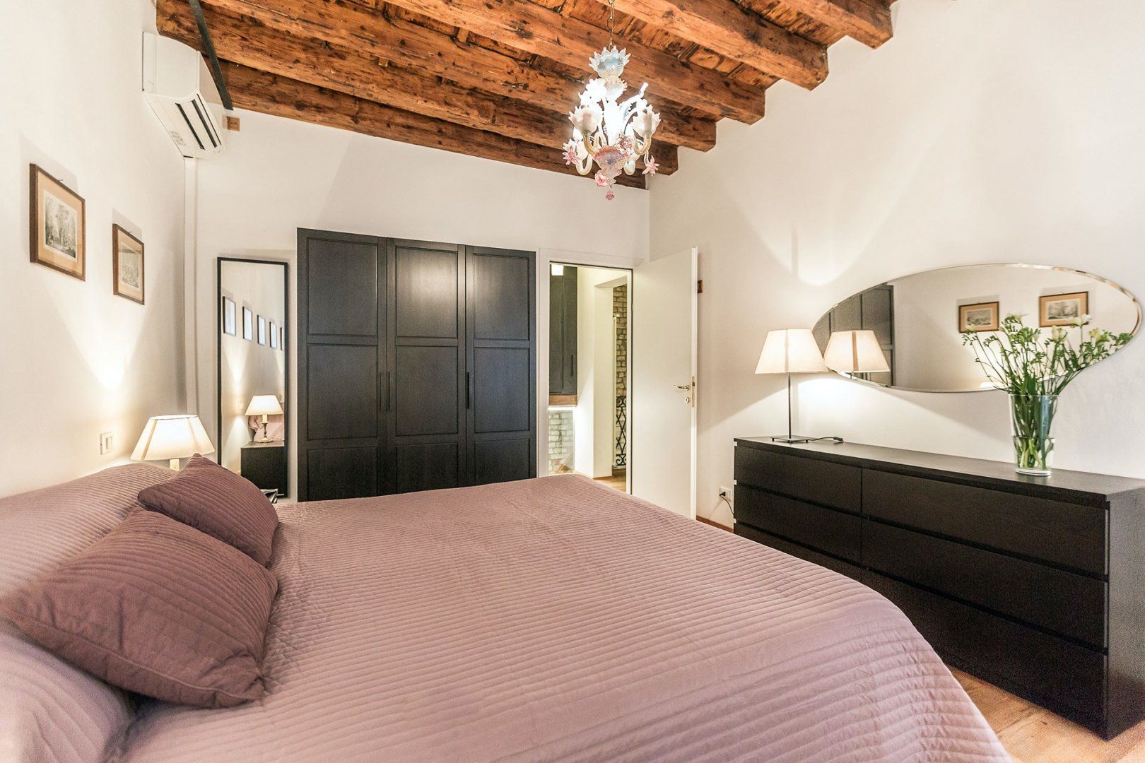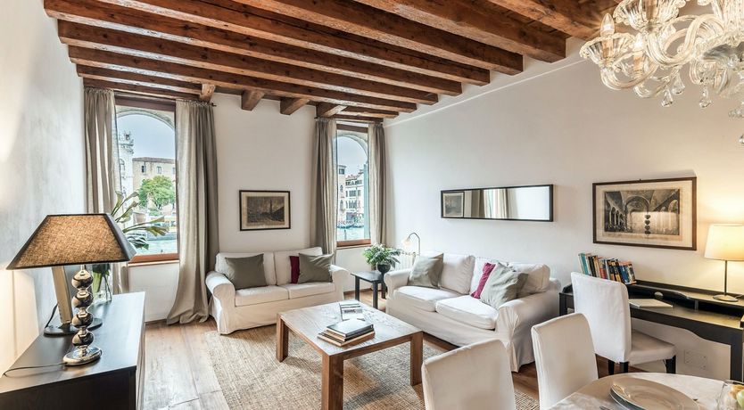 Incredible canal views and a sophisticated interior combine in this seventeenth-century building to create a luxury pad you'll relish returning to. We love the exposed brickwork and wooden beams above, and the lighting helps create a romantic atmosphere. The bed can also be split in two, making it perfect for two friends looking to explore too. You can grab fresh ingredients at the nearby Rialto Market to impress your companion in the large kitchen, and there is an array of restaurants practically at your doorstep.