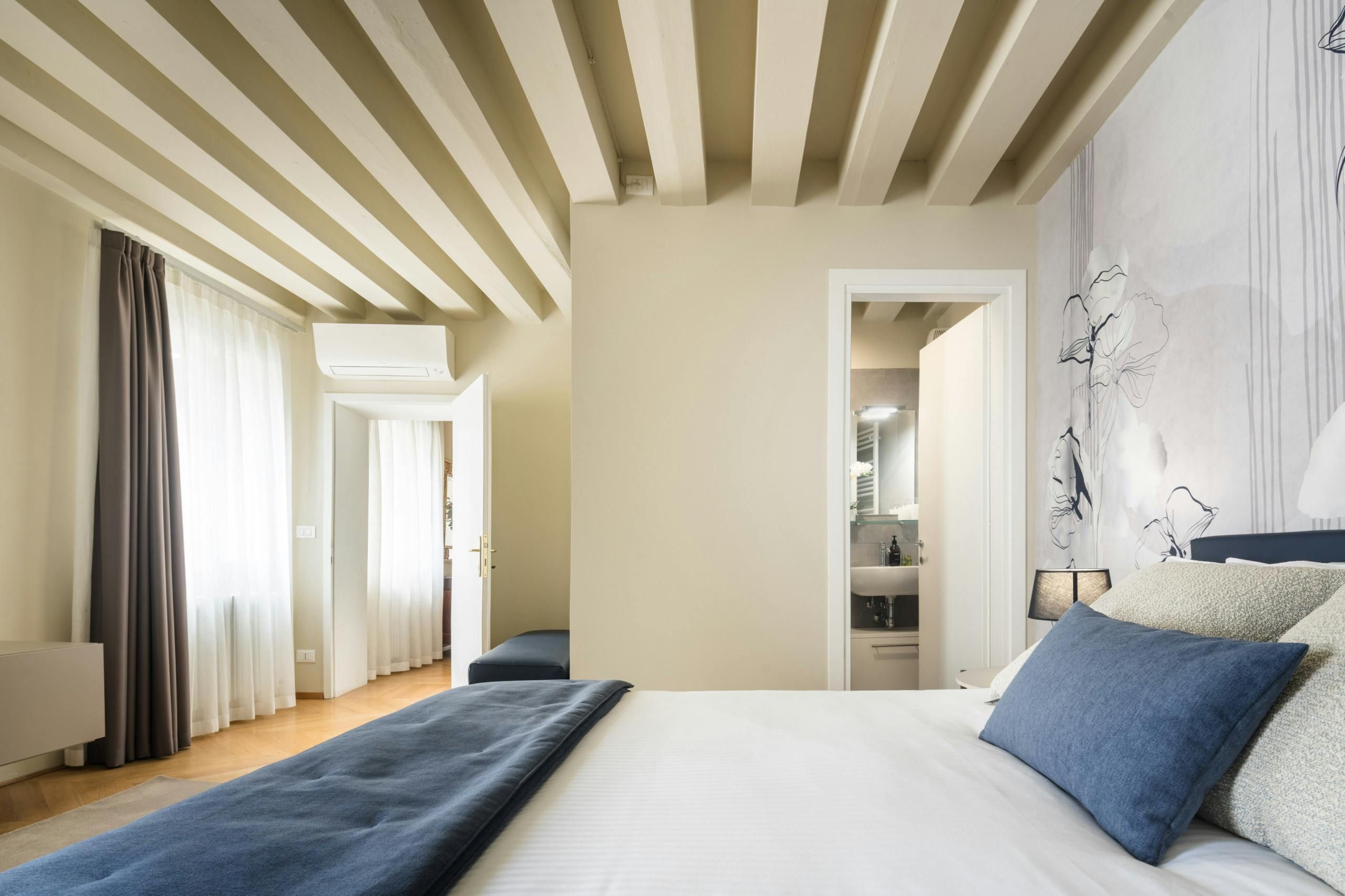 This apartment is situated in an excellent spot for exploring Venice. Piazza San Marco, Rialto Bridge, and Campo San Giovanni e Paolo are all a short walk away. The historic building even has its own bridge over the canal, so you'll only need to open the windows to admire the gondolas passing by. As far as design, it's super stylish. We love the mix of old and new, as well as the patterned wallpaper in the bedrooms. Two guests will sleep on a sofa bed, but in such a central location, that's a decent compromise.