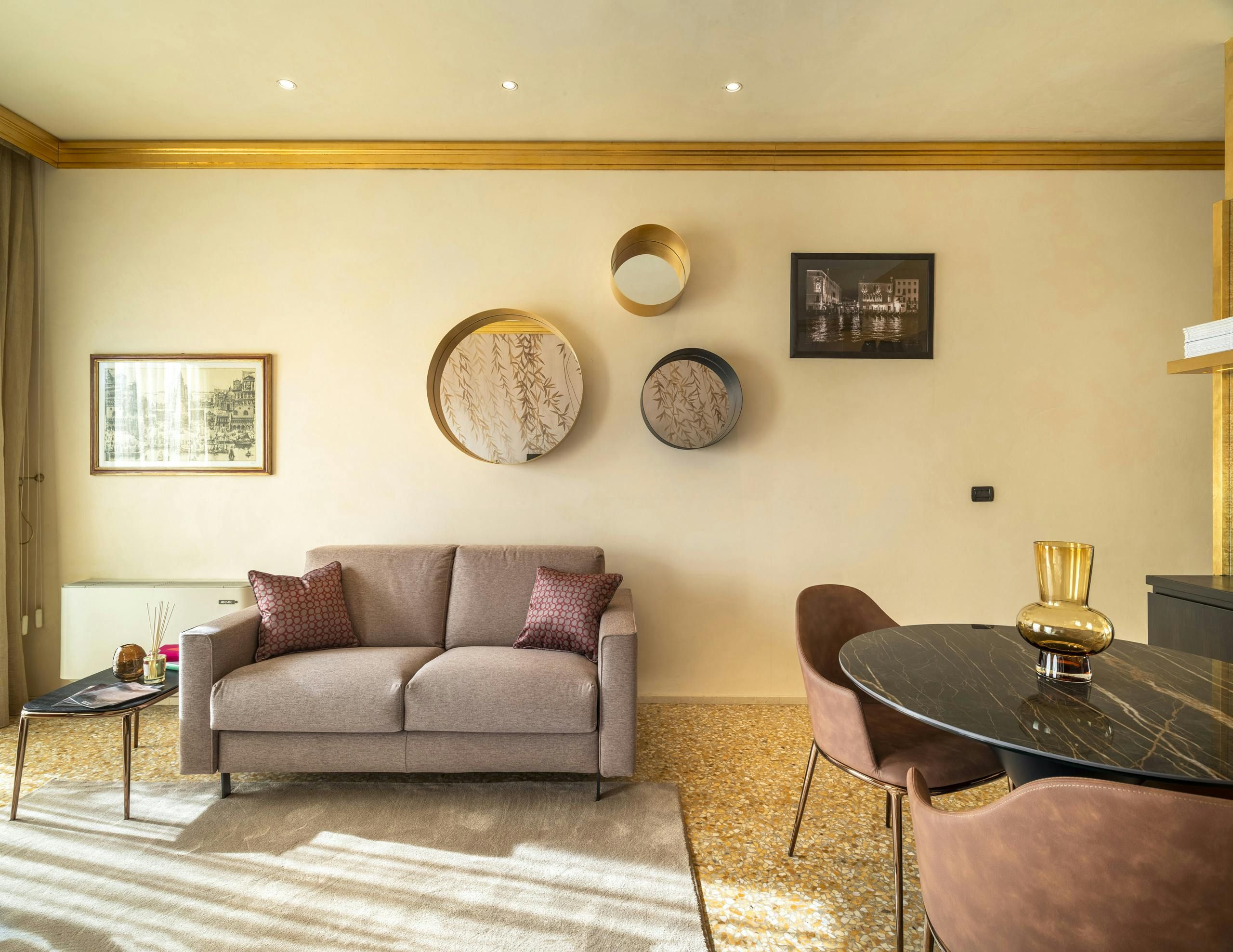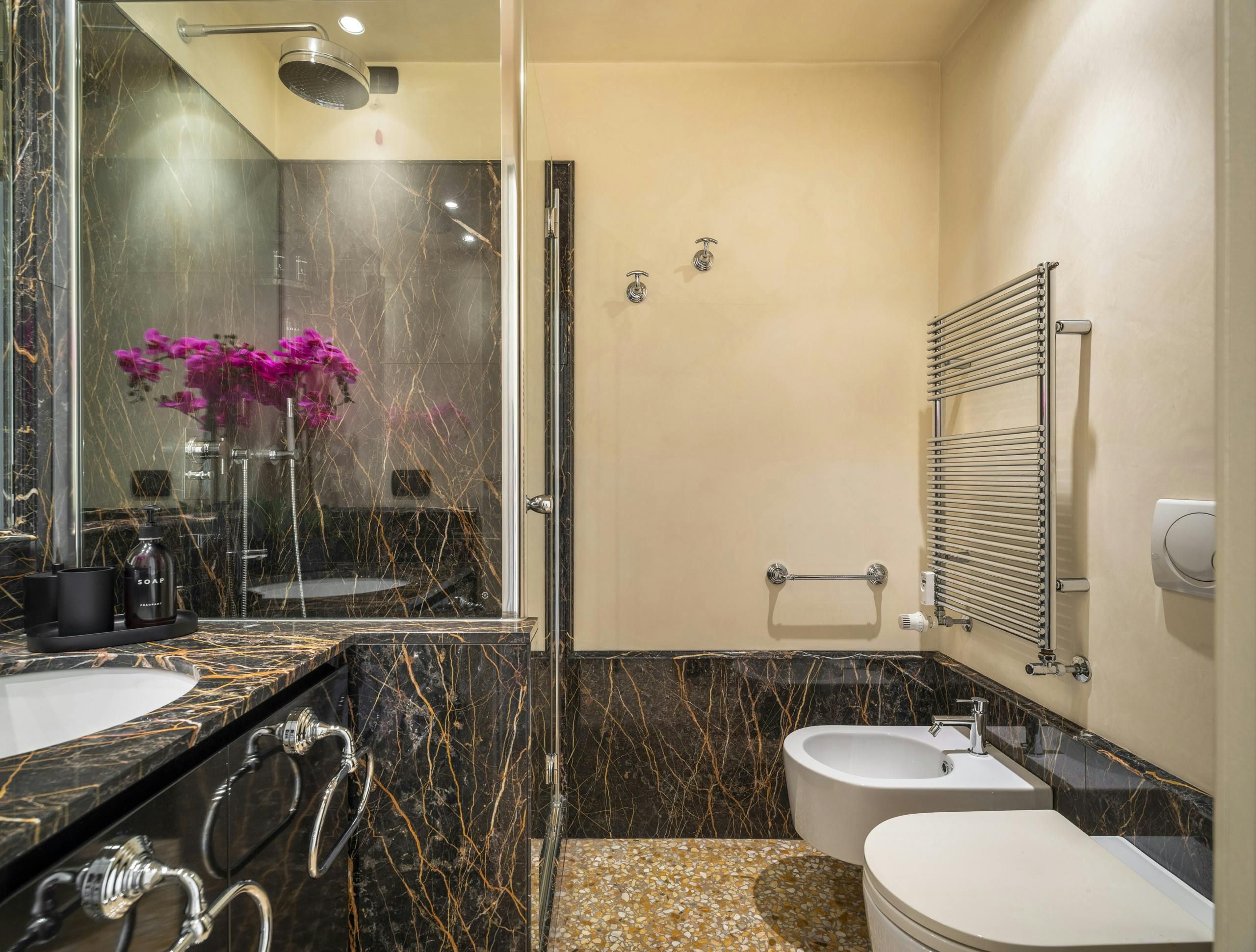 Looking for the best vista in Venice? This home might just have it. With a picturesque terrace perched above the Grand Canal, you can admire the oh-so-special scenery over your morning coffee – a wonderful way to start the day. Inside, the elegant rooms are just as inviting as the view, with marble and gold accents adding a splash of luxury. It’s reminiscent of a boutique hotel, but with more space to stretch out, and a kitchen so you can cook at home (note there’s no oven, just a hob). And with the delights of the city on your doorstep, you’ll never be short of things to see and do.