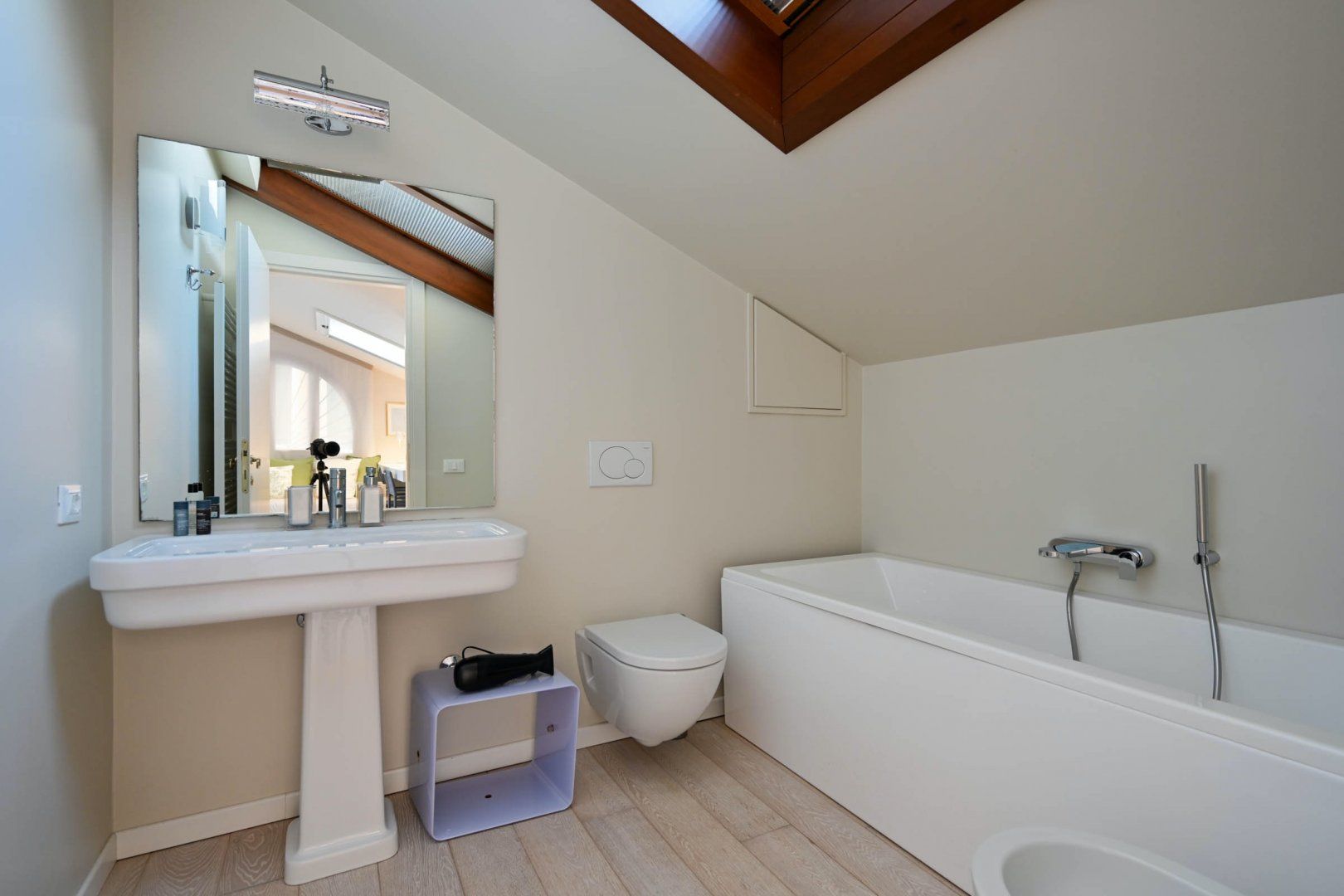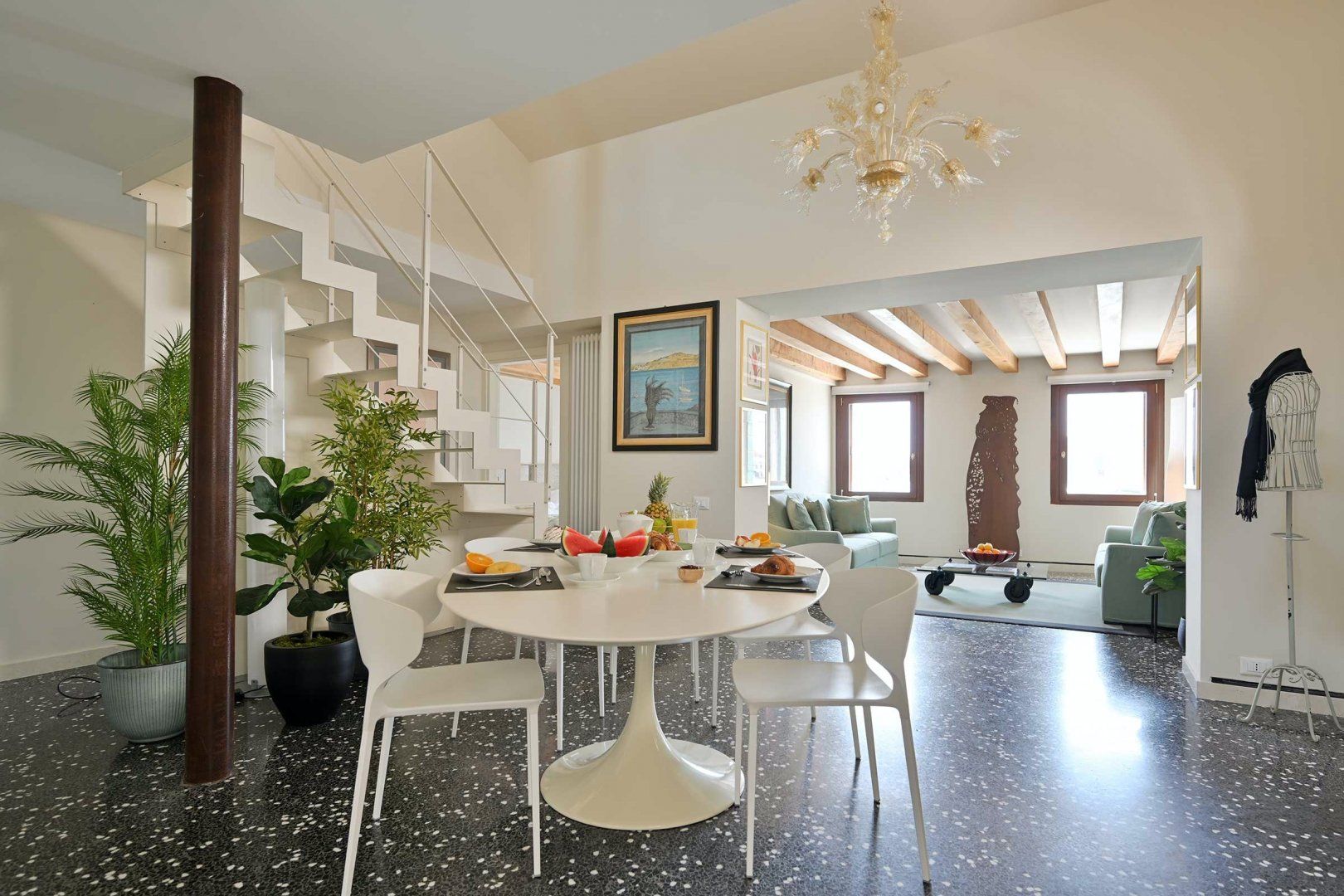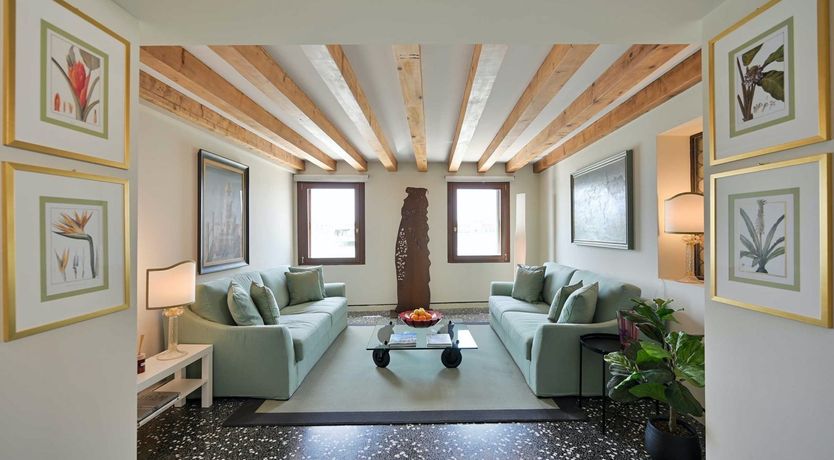 We love the vistas of the Giudecca Canal, Giudecca Island, and the Redentore Church from this home’s windows. Unusual for Venice, there’s a good-sized shared garden to enjoy too. Lovers of design classics will be glad to know there are a few gems here such as the Saarinen Tulip dining table and Murano glass chandeliers. The location is great too – it’s only a two-minute stroll to the Basilica della Salute and the Guggenheim Collection, while Accademia Bridge, one of only four bridges to span the Grand Canal, is five minutes on foot.