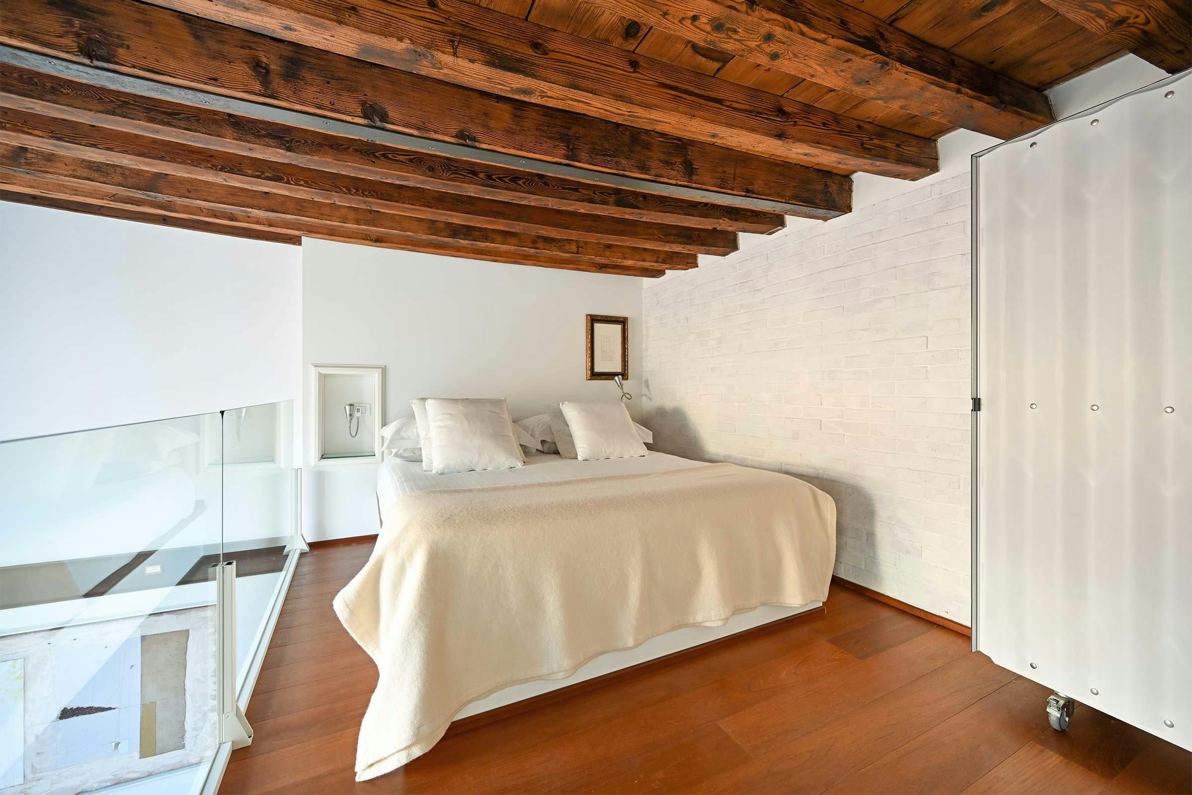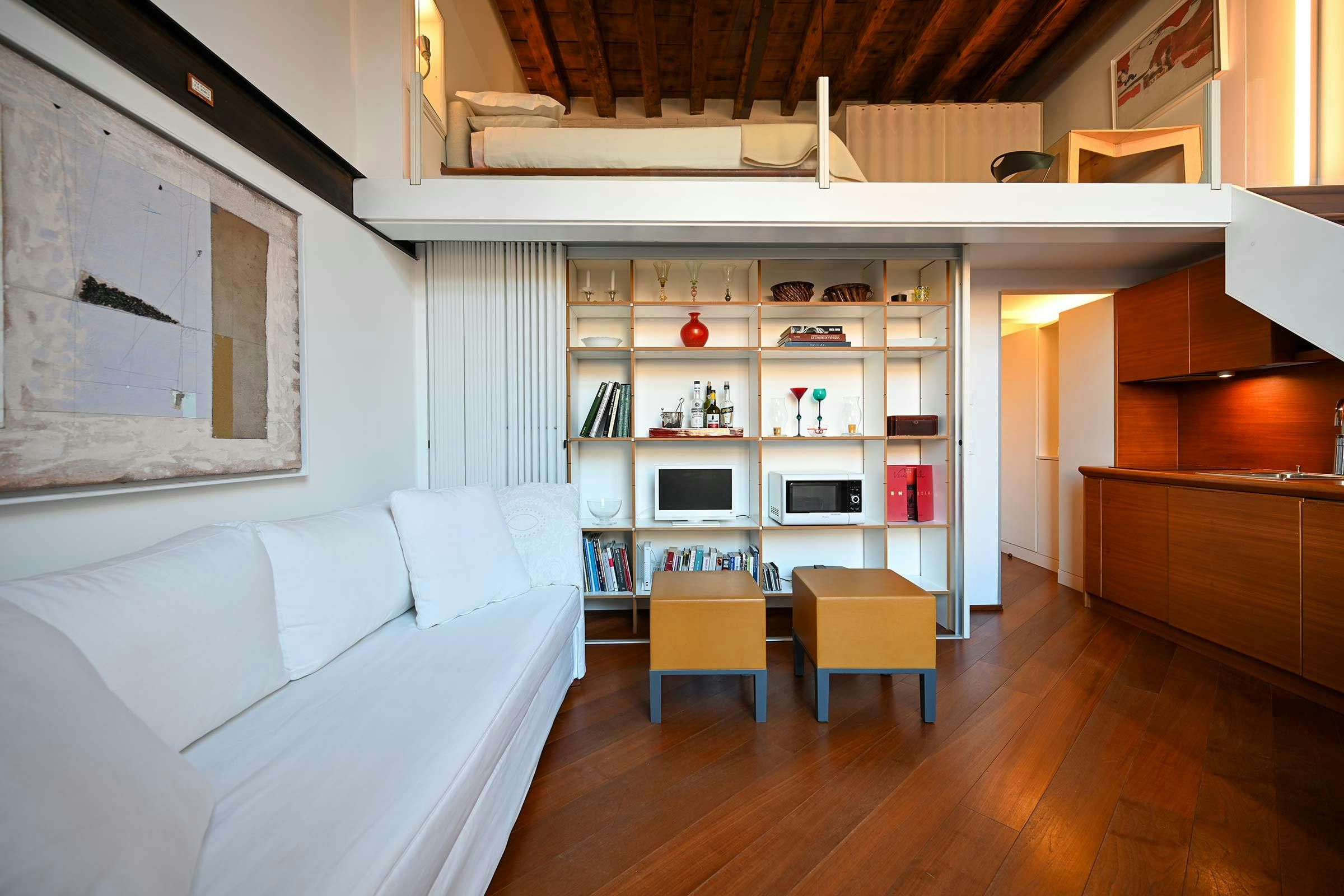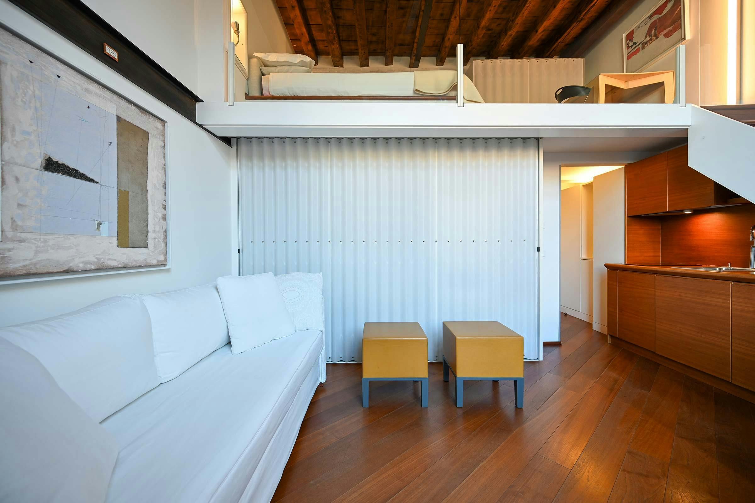 If this canalside apartment isn't in a stellar location, nothing is. It's right along the Zattere waterfront, just a one-minute stroll from the Gallerie dell'Accademia and its famous bridge. The setting is undoubtedly the highlight, but this studio-style apartment gets points for style, too. Sure, it's compact, but it has plenty of character. The bed is on the mezzanine tucked under the wooden-beamed ceiling, creating separation from the living area downstairs. We think it's perfect for couples or solo travellers looking for a comfortable and central base in Venice.