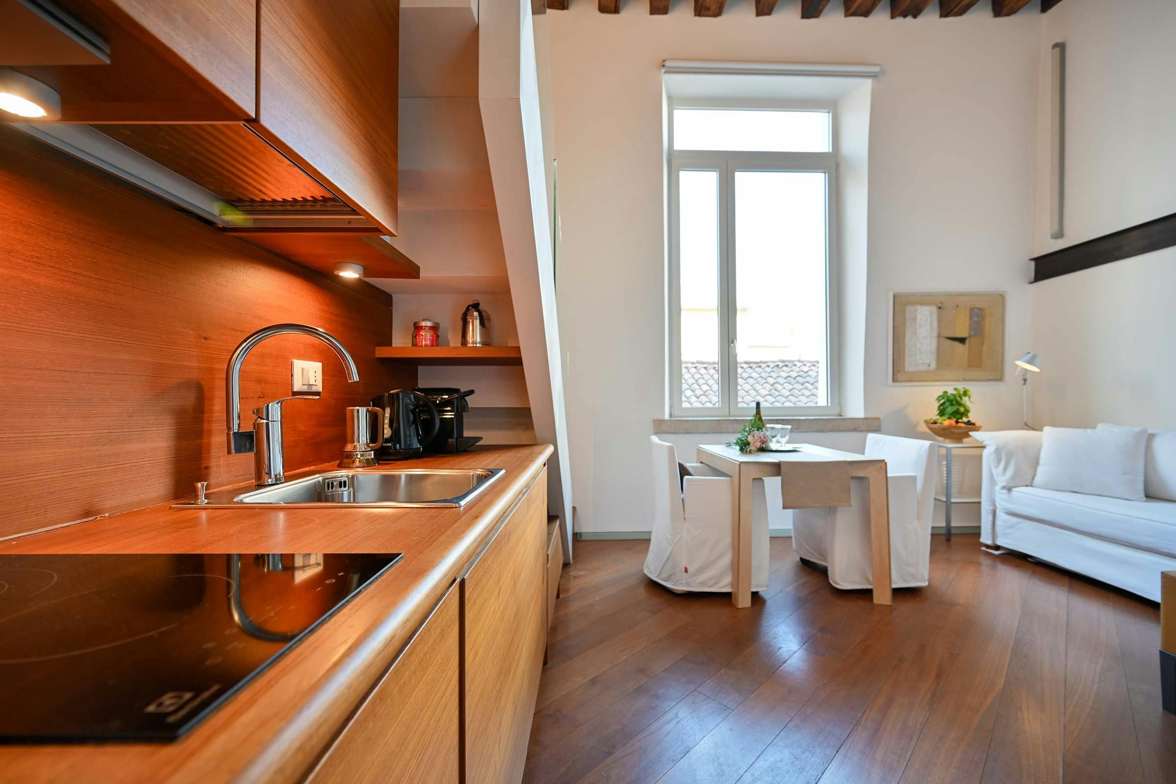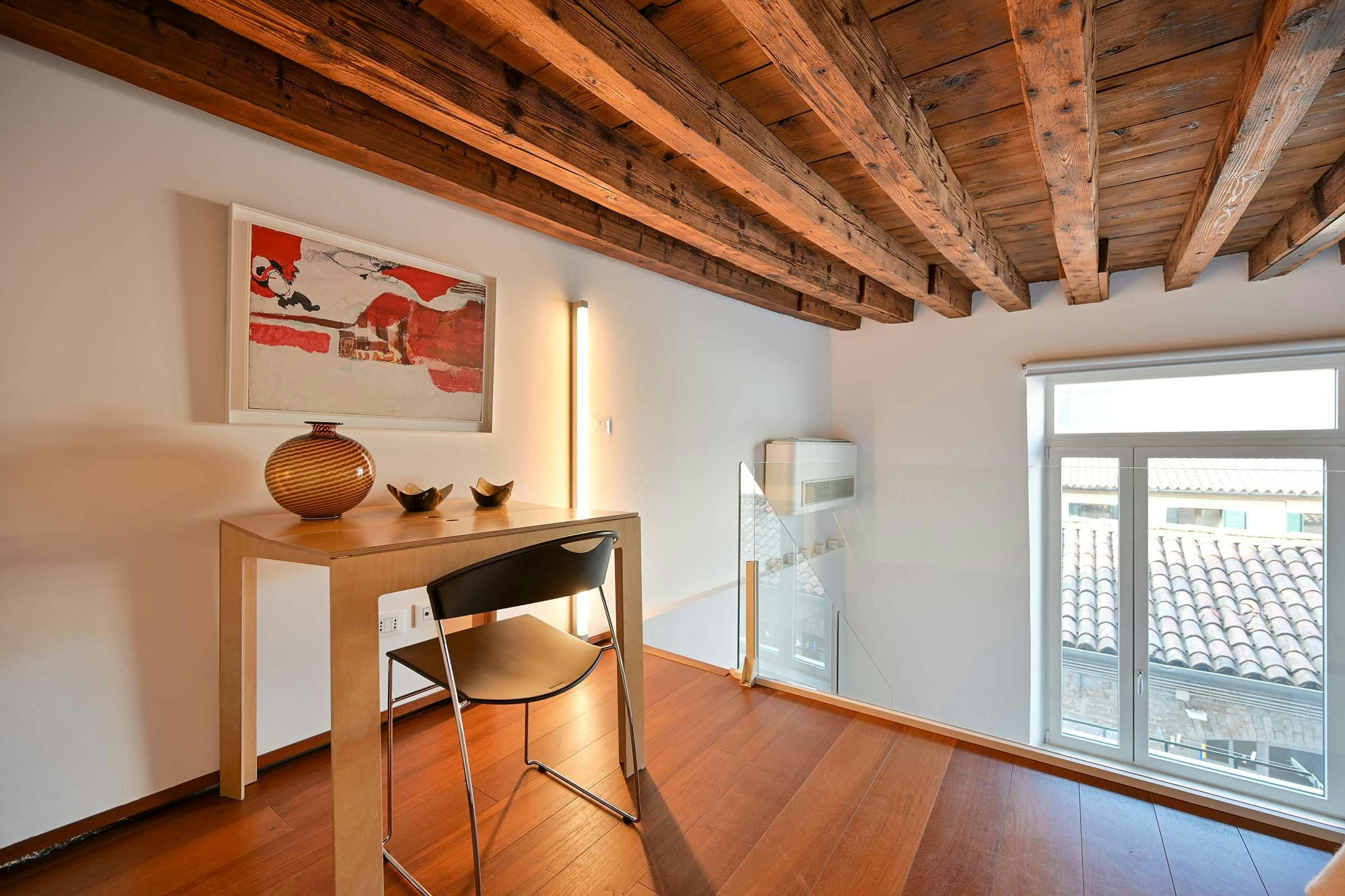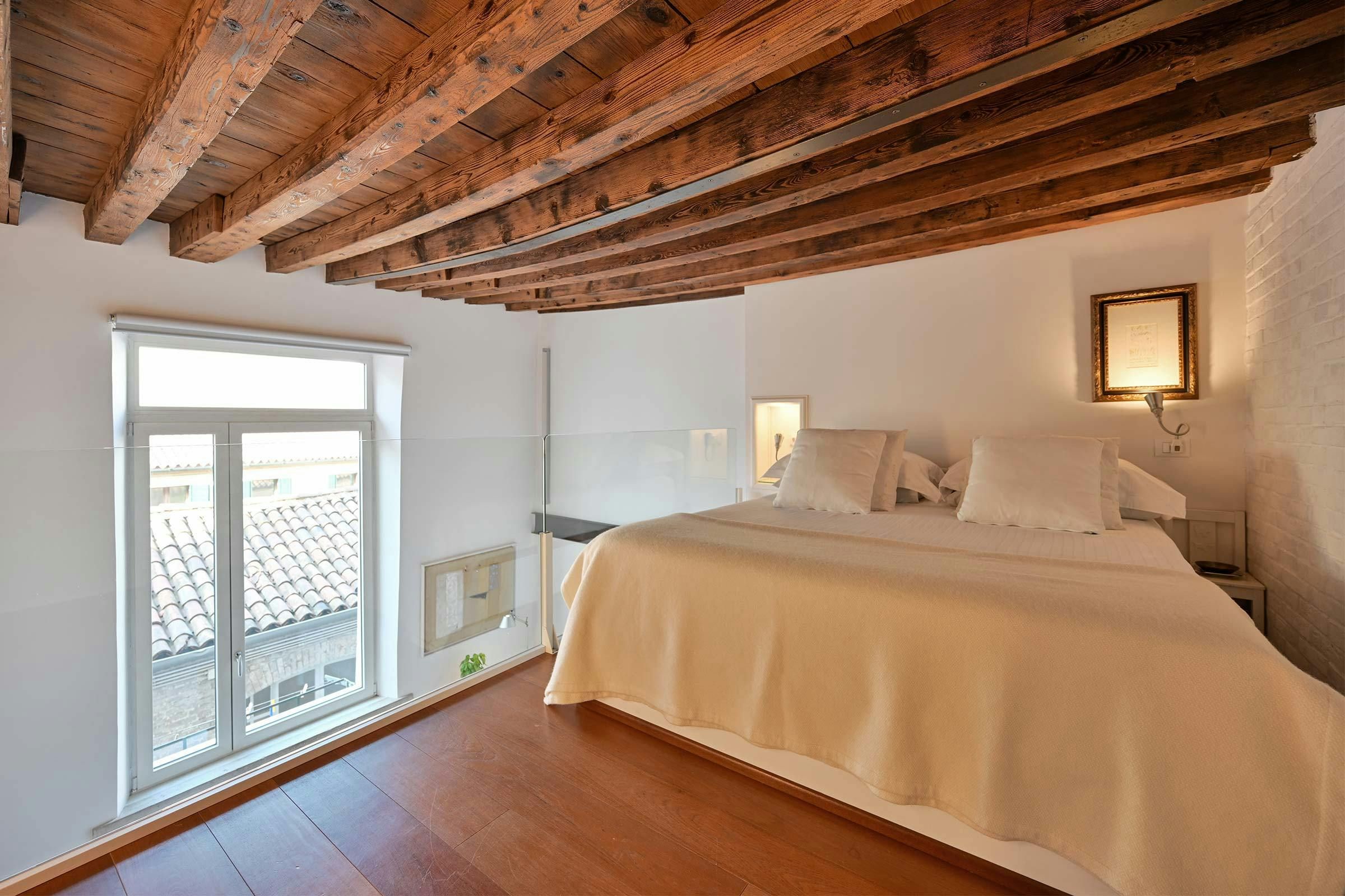 If this canalside apartment isn't in a stellar location, nothing is. It's right along the Zattere waterfront, just a one-minute stroll from the Gallerie dell'Accademia and its famous bridge. The setting is undoubtedly the highlight, but this studio-style apartment gets points for style, too. Sure, it's compact, but it has plenty of character. The bed is on the mezzanine tucked under the wooden-beamed ceiling, creating separation from the living area downstairs. We think it's perfect for couples or solo travellers looking for a comfortable and central base in Venice.