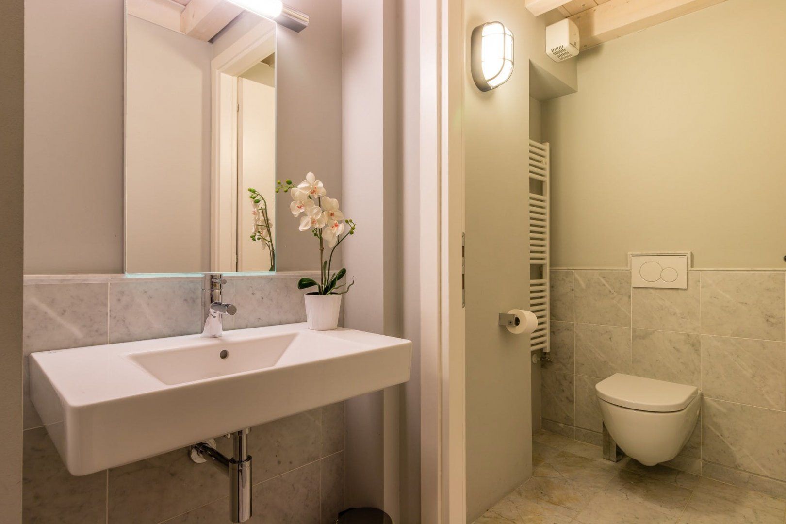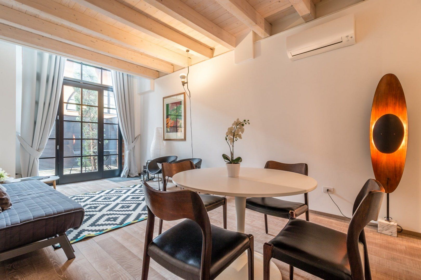 Located in Venice’s Cannaregio district, this practical apartment offers a stay away from the tourist crowds yet within easy reach of the city’s most sought-after sights thanks to the nearby vaporetto stops. Laid over two floors, you won’t find a TV or a washing machine here, and at capacity, two guests will need to share the sofa bed in the living area. However, the patio equipped with outdoor seating is a nice touch – perfect for sunny mornings coffees or evening drinks – and the dining table can double as a remote work spot should you need to catch up on business.
