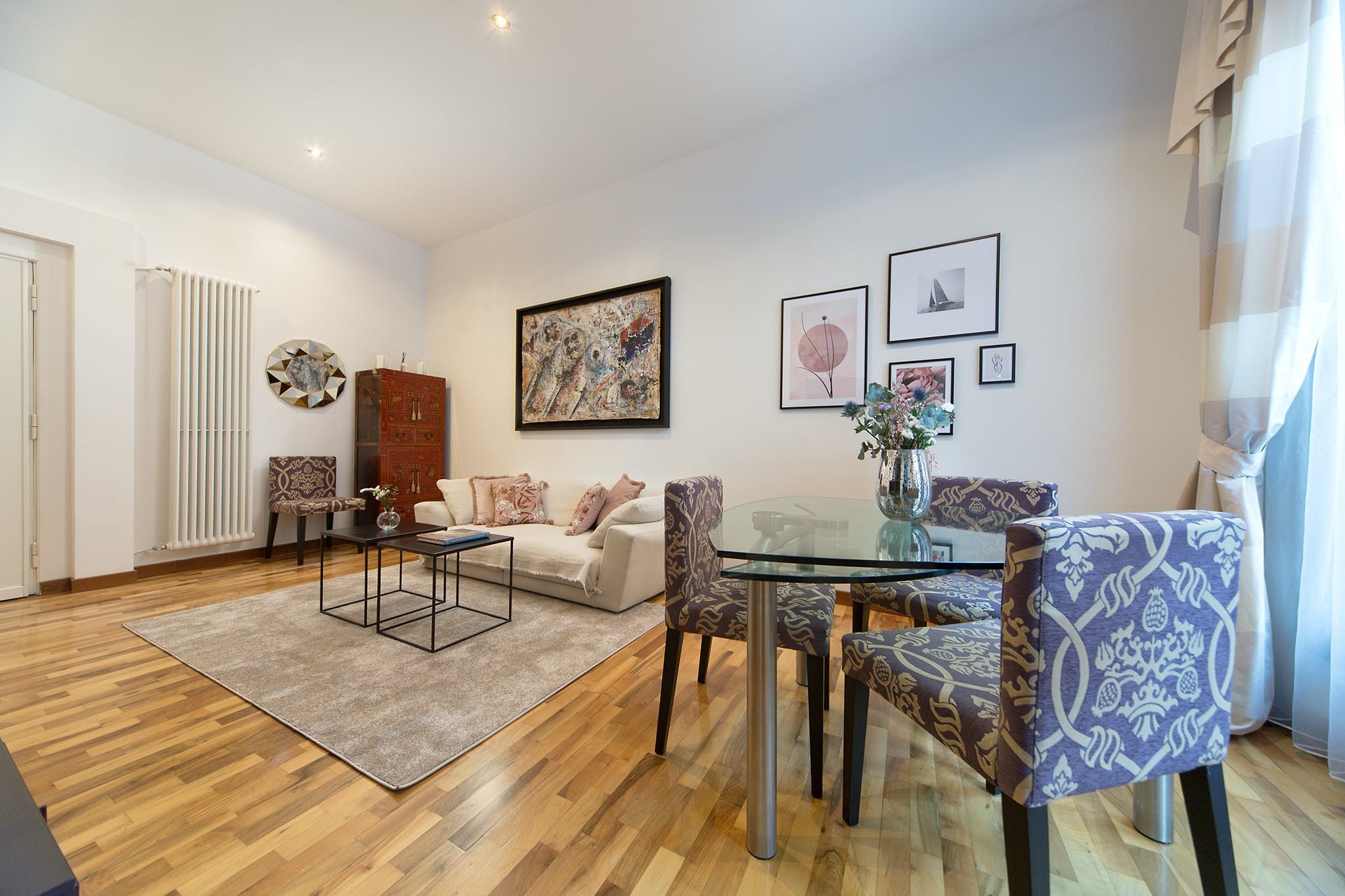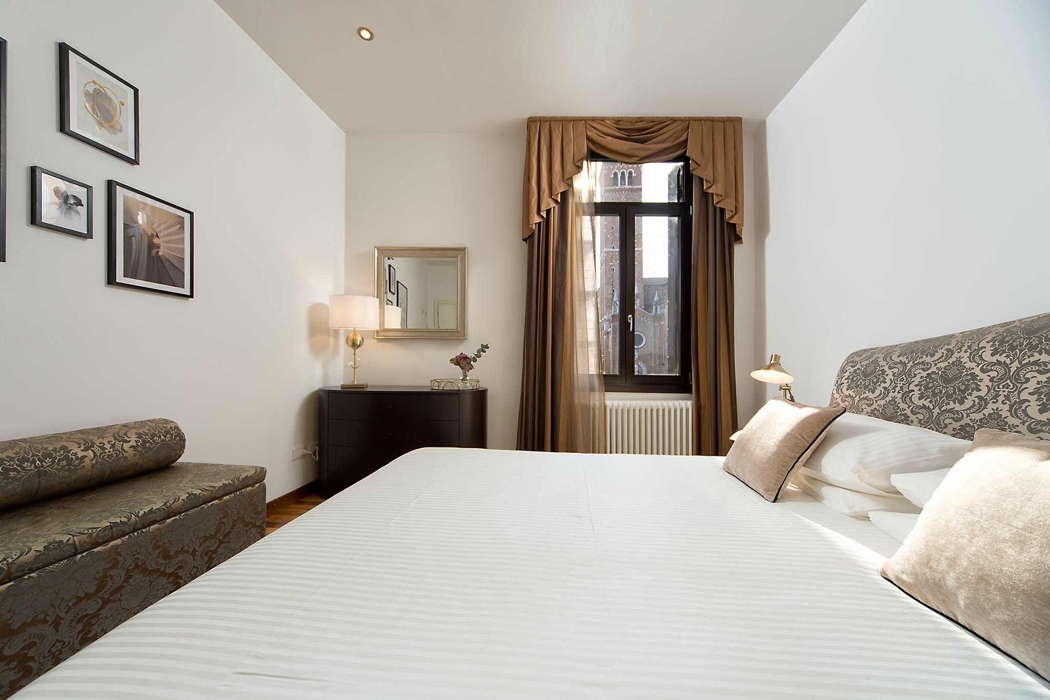 This lovely flat situated in beautiful Venice awaits you for a comfortable getaway to the city. This Venetian building holds charming decor with subtle antique-styled touches, as well as a view of the famous Basilica dei Frari and the canal. Enjoy a cup of coffee as you watch the gondolas pass by below, allowing you to simply observe the locale as you unwind or tuck into a hearty homecooked meal at the dining table by the large window.