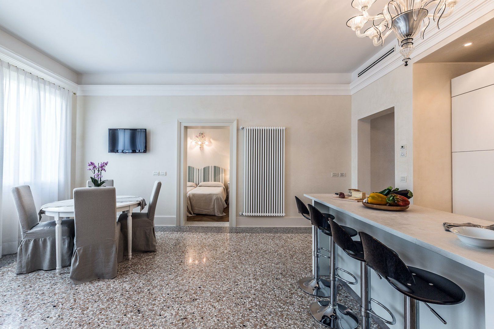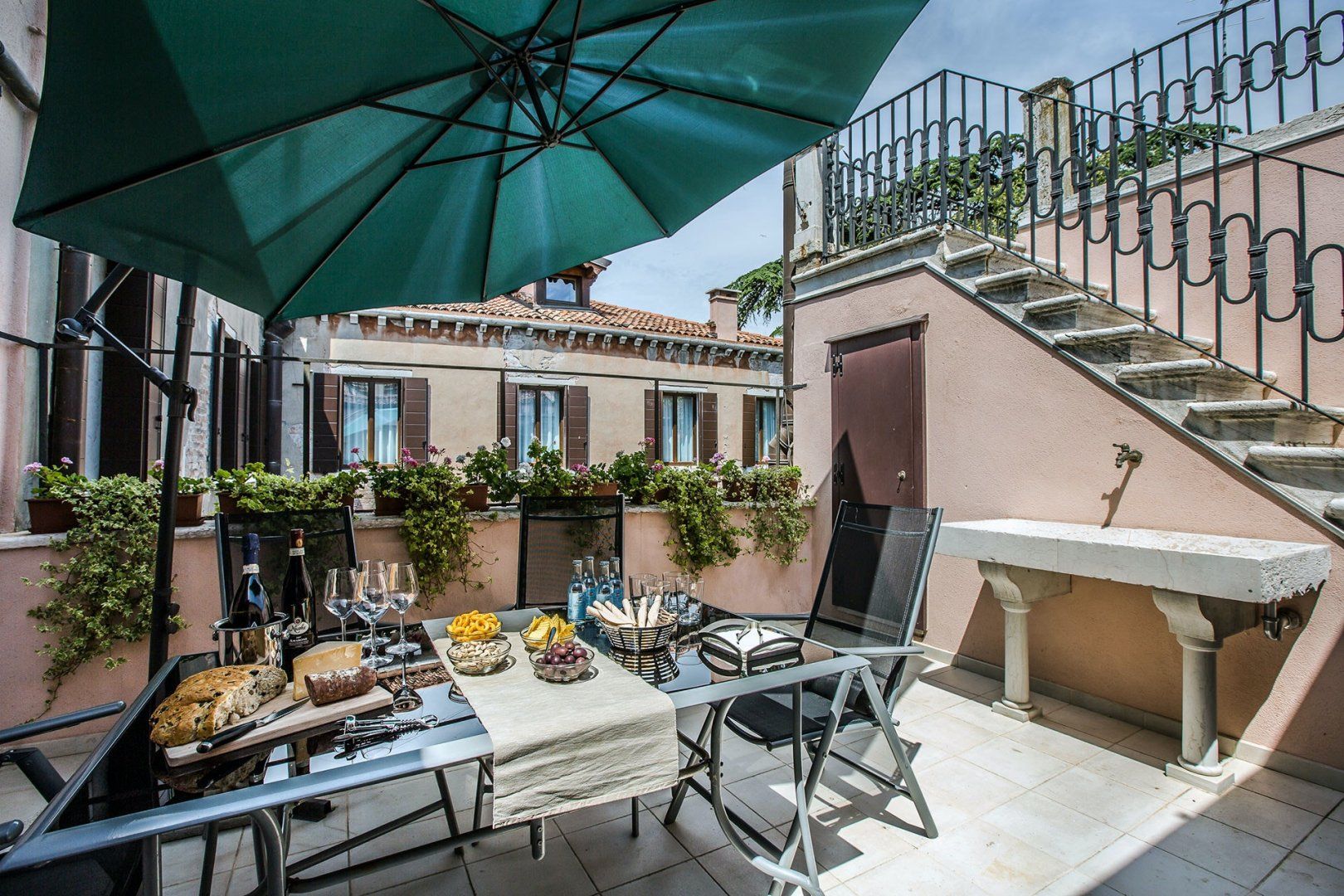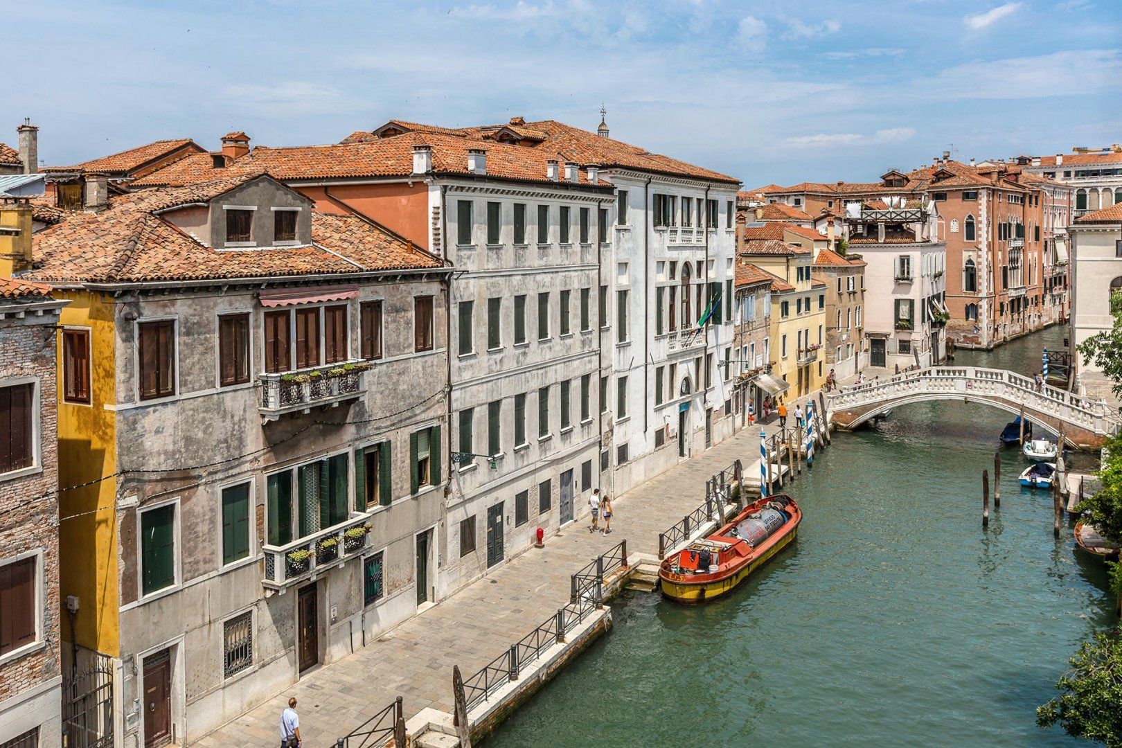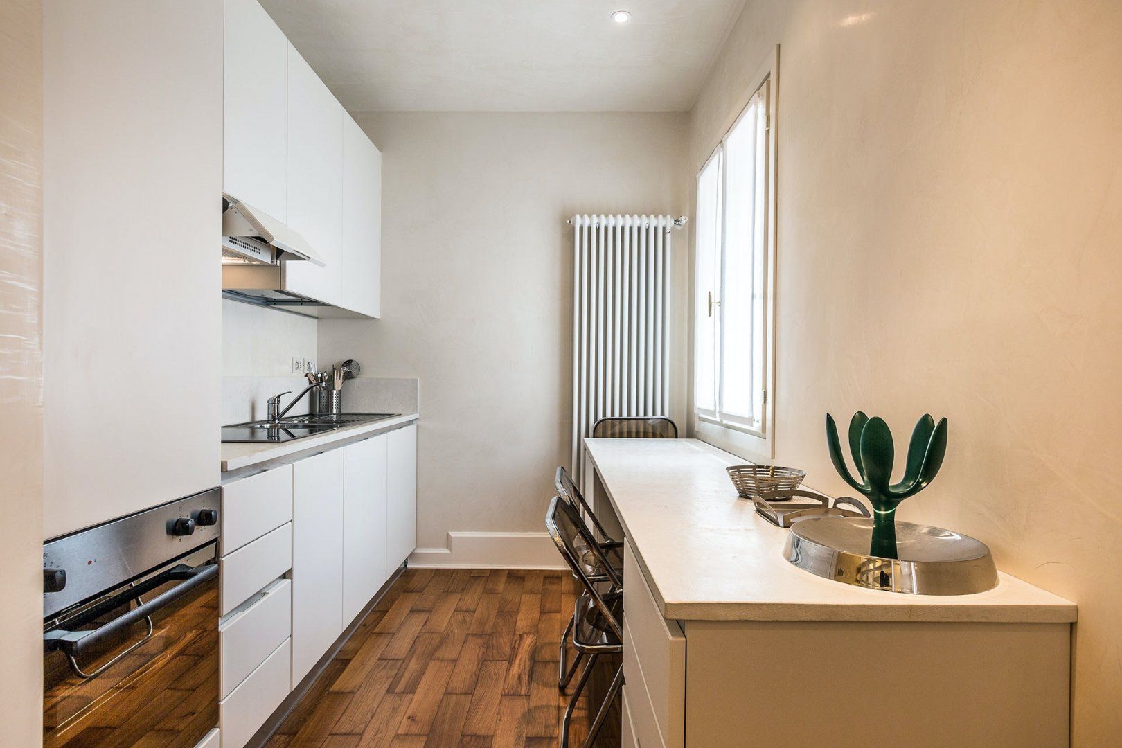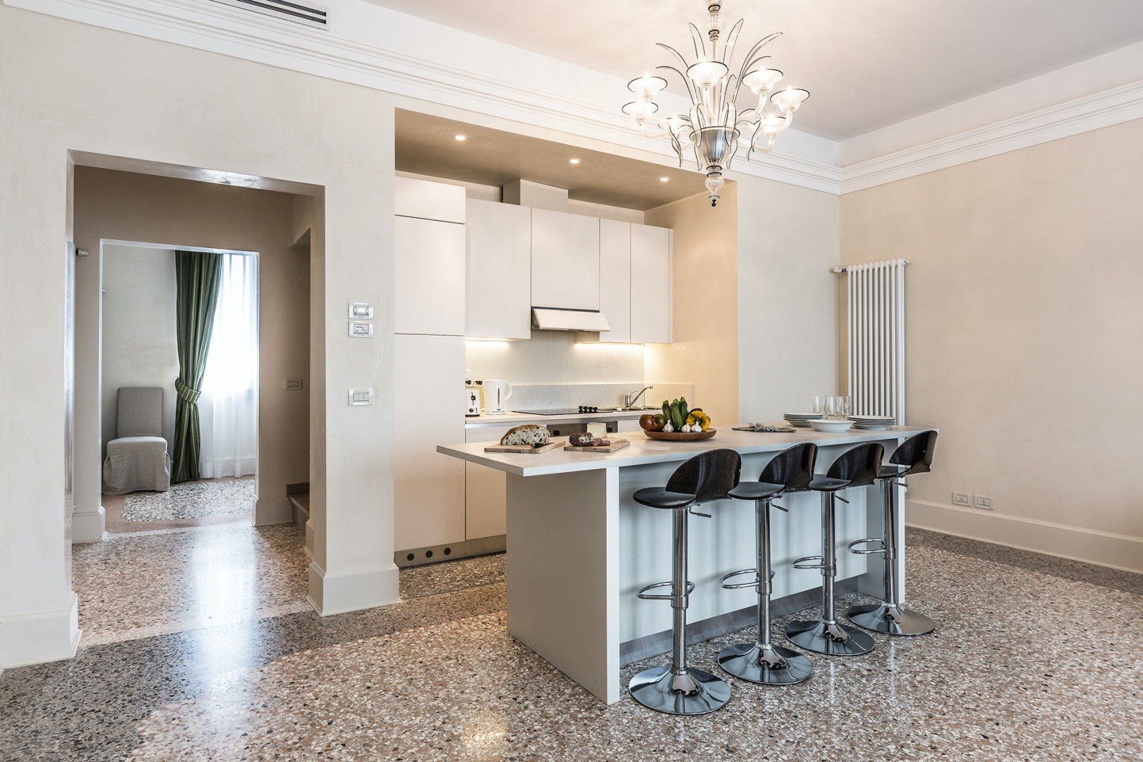 Divided into four independent apartments, this elegant home will suit large families or groups who like their own space. Each apartment is immaculately finished with a combination of traditional and modern pieces – we love the perfect parquet flooring and renovated frescoes in some of the master bedrooms. When it’s time to get together, share an aperitivo on the communal patio or sit down for a meal in apartment B’s large dining space. Location-wise, you’re close enough to walk to St Mark’s Square but far from the crowds – the laid-back Castello area has tons of great wine bars, local restaurants and peaceful churches to enjoy.