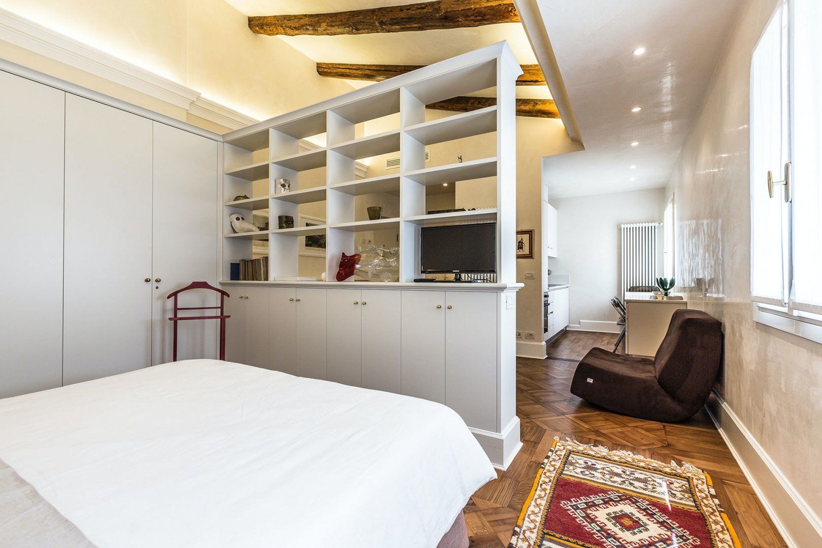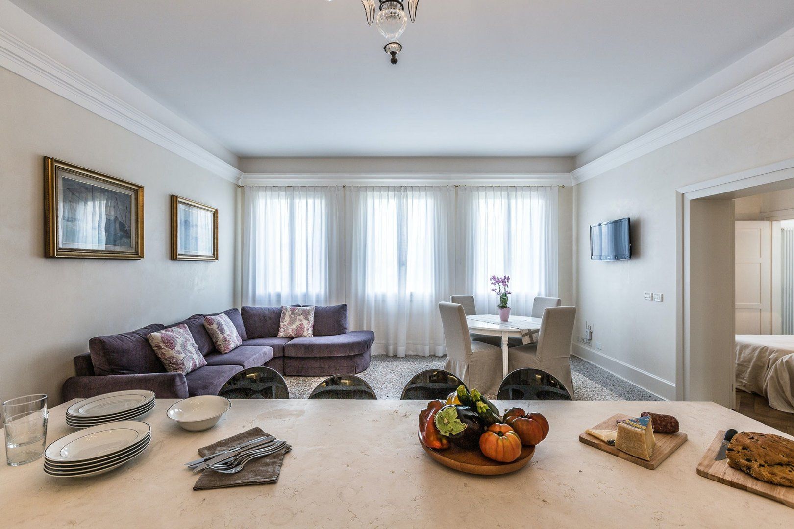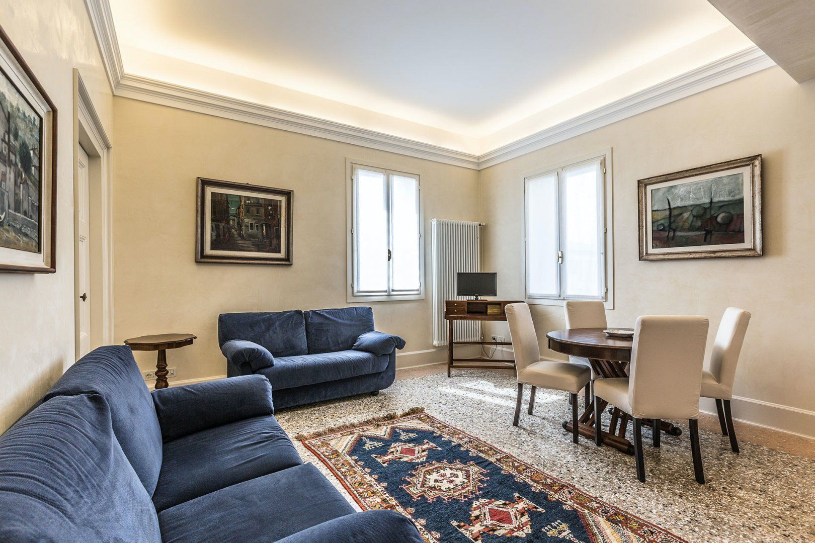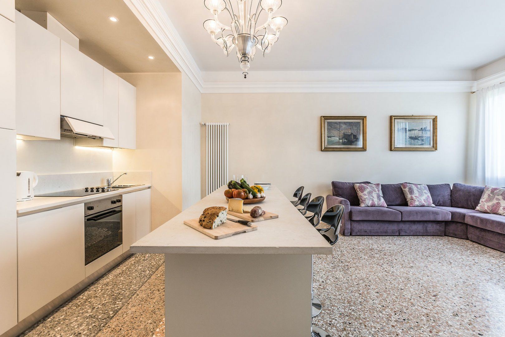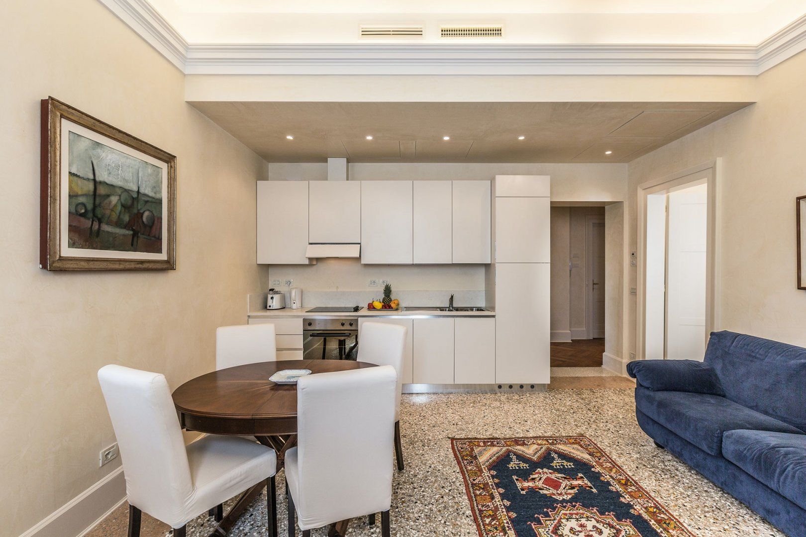 Divided into four independent apartments, this elegant home will suit large families or groups who like their own space. Each apartment is immaculately finished with a combination of traditional and modern pieces – we love the perfect parquet flooring and renovated frescoes in some of the master bedrooms. When it’s time to get together, share an aperitivo on the communal patio or sit down for a meal in apartment B’s large dining space. Location-wise, you’re close enough to walk to St Mark’s Square but far from the crowds – the laid-back Castello area has tons of great wine bars, local restaurants and peaceful churches to enjoy.