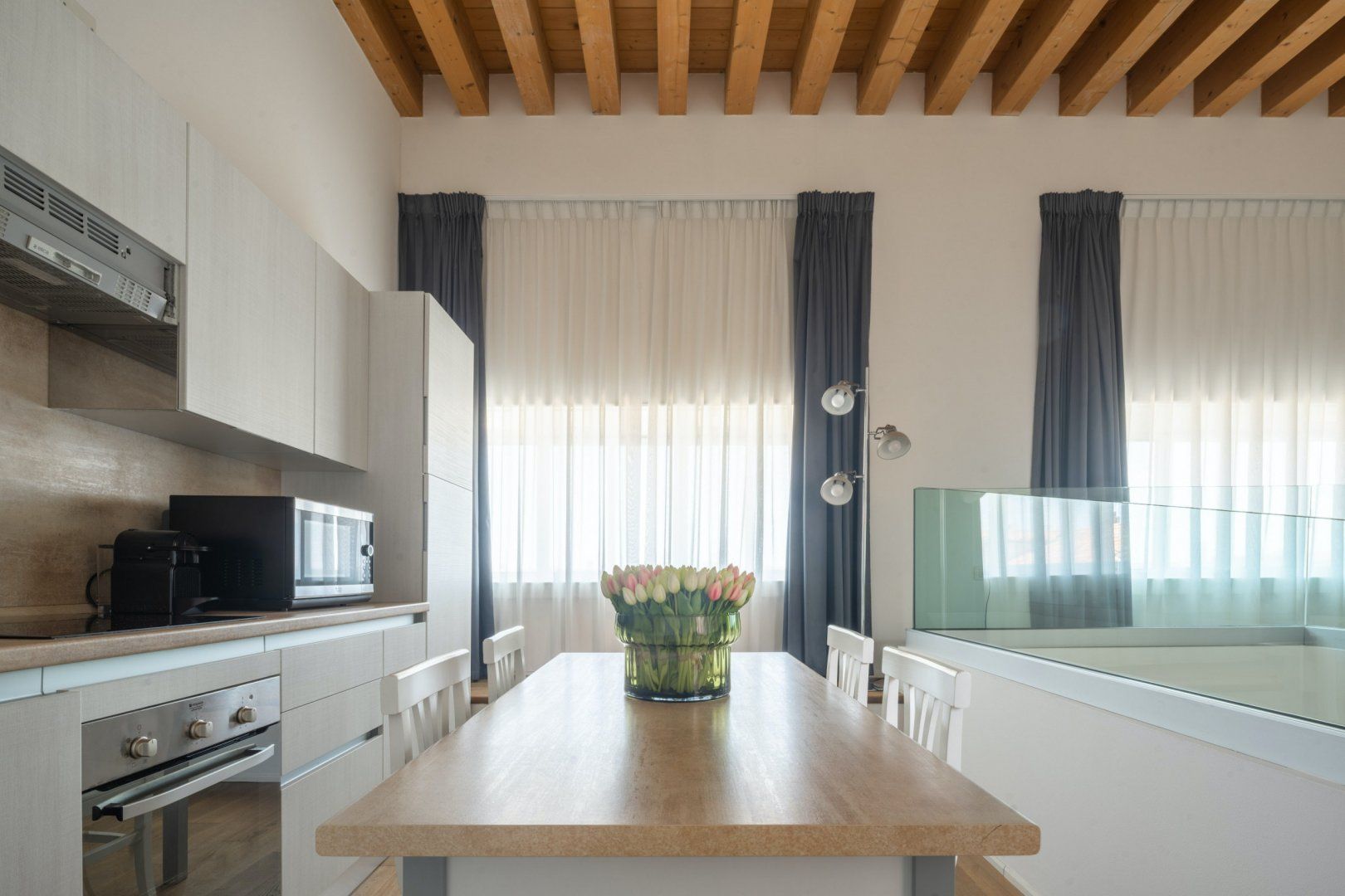 Housed in a former thermal power plant built in the 1930s, this home situated alongside one of Venice’s canals, has a private balcony perfect for outdoor entertaining. There’s an upside-down layout here with the living space above the bedrooms, so there are stairs to climb. You can live like a local in this apartment’s neighbourhood – it’s a five-minute stroll to Cannaregio, with its variety of restaurants and bars, as well as the Guglie area. When you want to explore further – to Venice Lido Beach, for example – the transport hub of Piazzale Roma is a seven-minute walk away.
