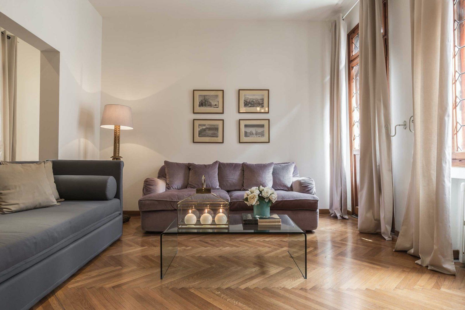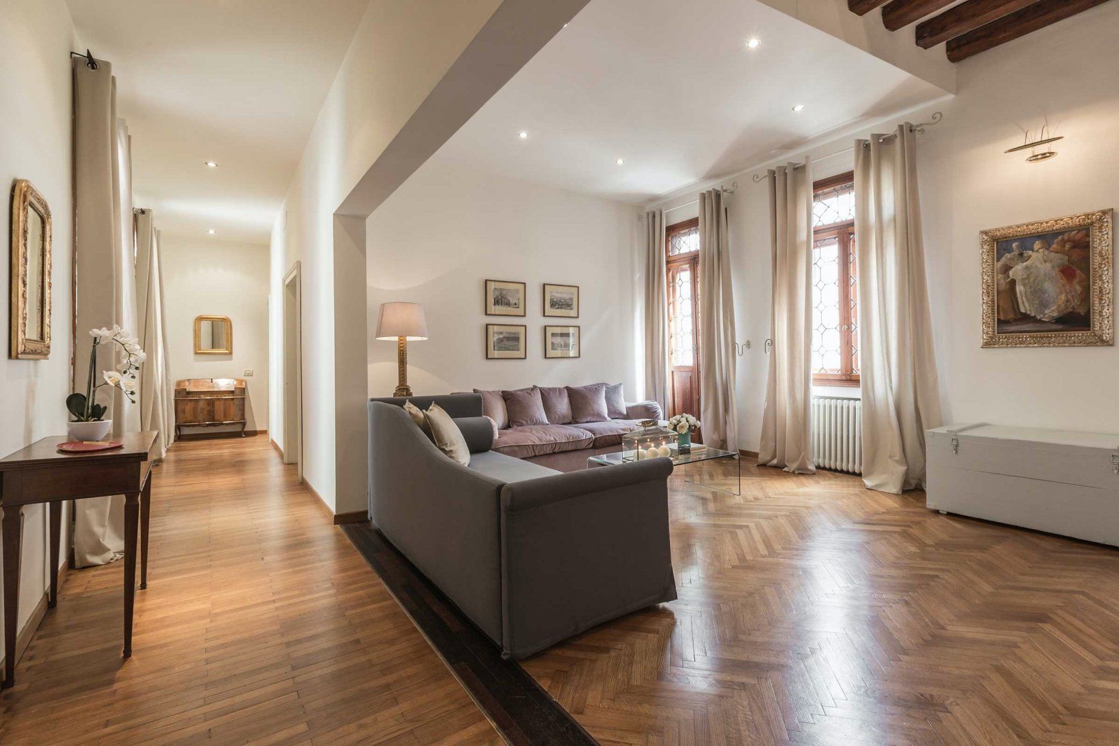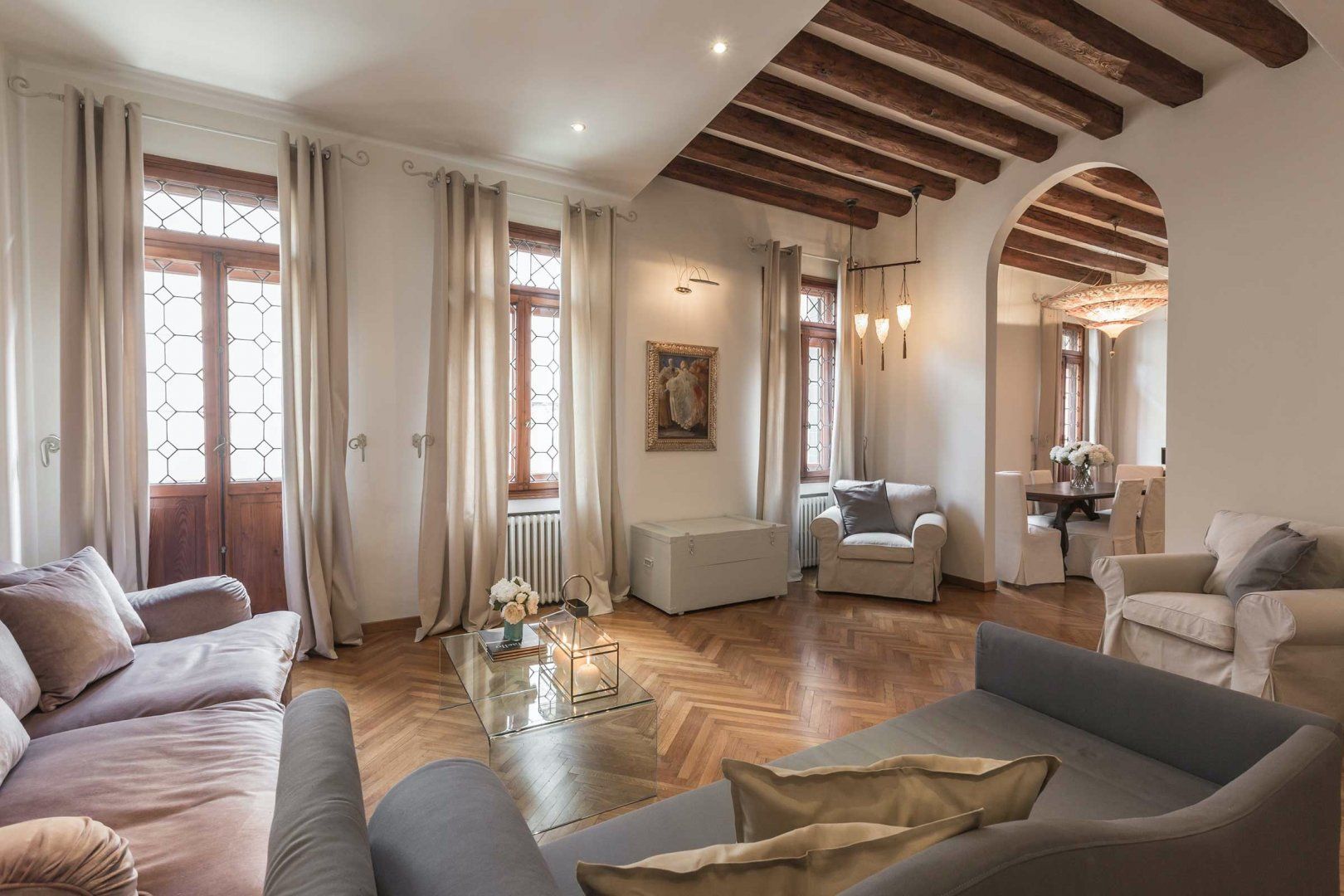 This chic Venetian apartment is tucked away on a quiet street close to the bustling Piazza San Marco. It's located on the second floor of a historic building – so may not be suitable for individuals with reduced mobility. The space is an excellent base for a couple or small group of friends wanting to explore the winding streets of this romantic city with ease. Although the kitchen is quite small, it has all the expected appliances and even a balcony with great canal views. We love the location of this property – the nearest supermarket is less than one minute away on foot and the Rialto Bridge is a four-minute stroll from the home.