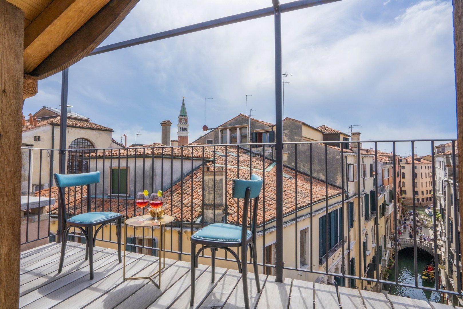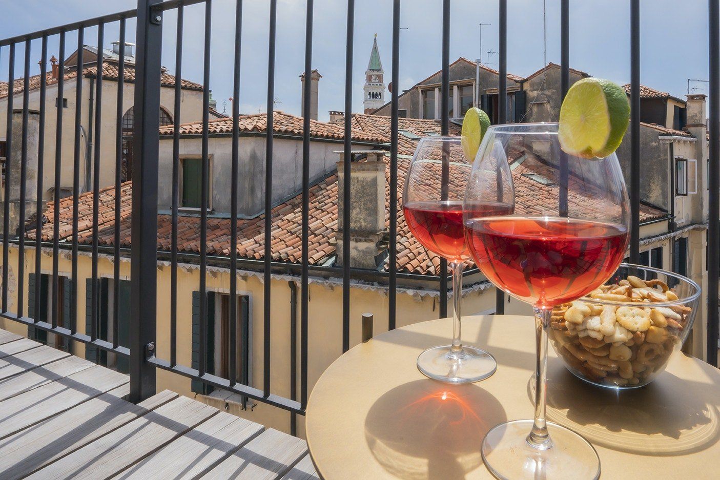 When your feet can no longer carry you, take yourself home and relax. Rinse off the city in the chromotherapy shower – the lights are bound to wake you up! Relax on the terrace, sipping a glass of local wine, nibbling on an assortment of antipasto, and looking out onto the city view and the lovers gliding past on the gondolas beneath you.
